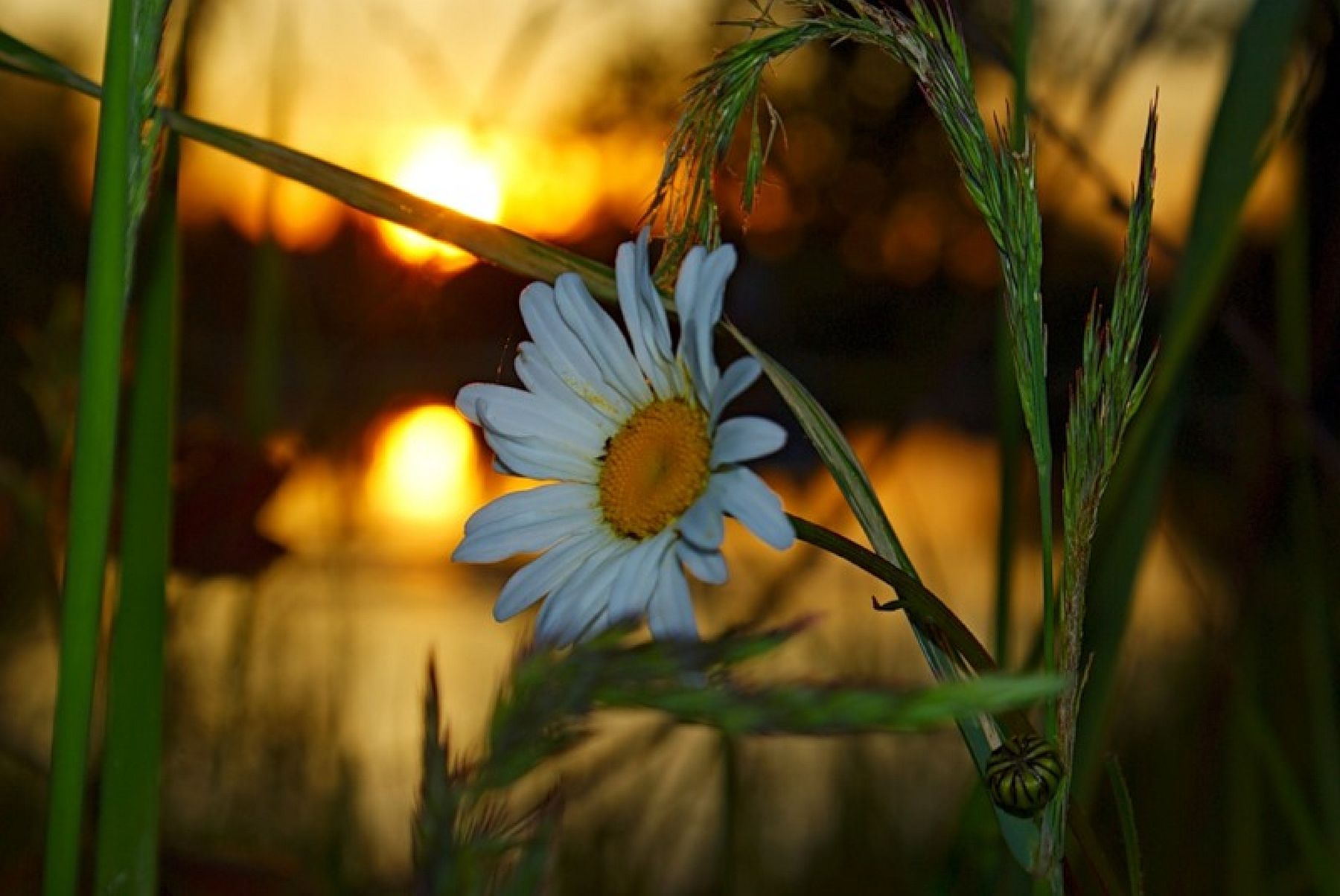 Скачать обои для рабочего стола Ромашка и закат и фото