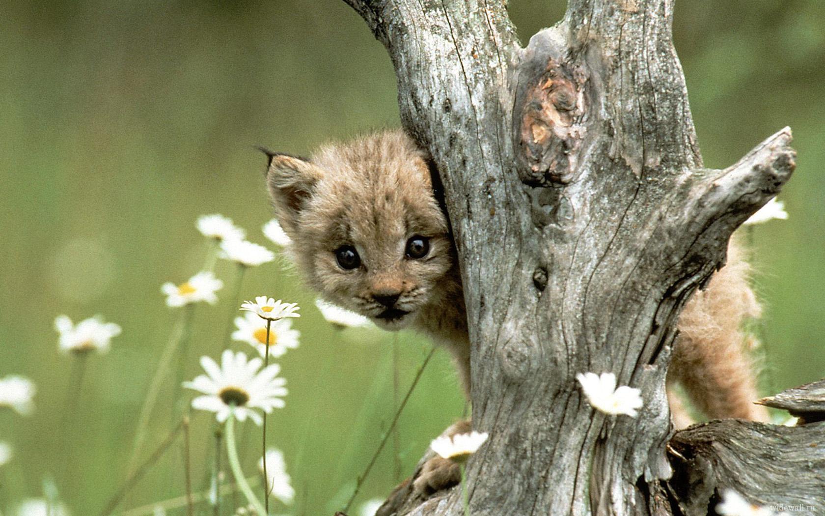 Похожие обои на Ромашки и котенок гепарда: