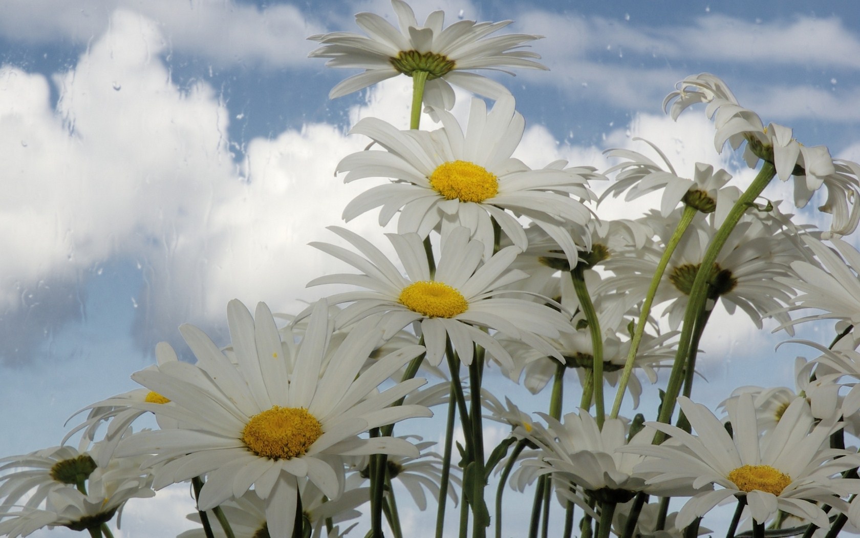 Скачать обои для рабочего стола Ромашки на фоне дождя и фото