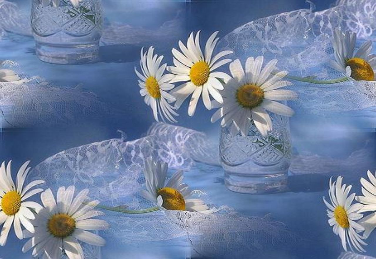 Скачать обои для рабочего стола Ромашки в хрустале и фото