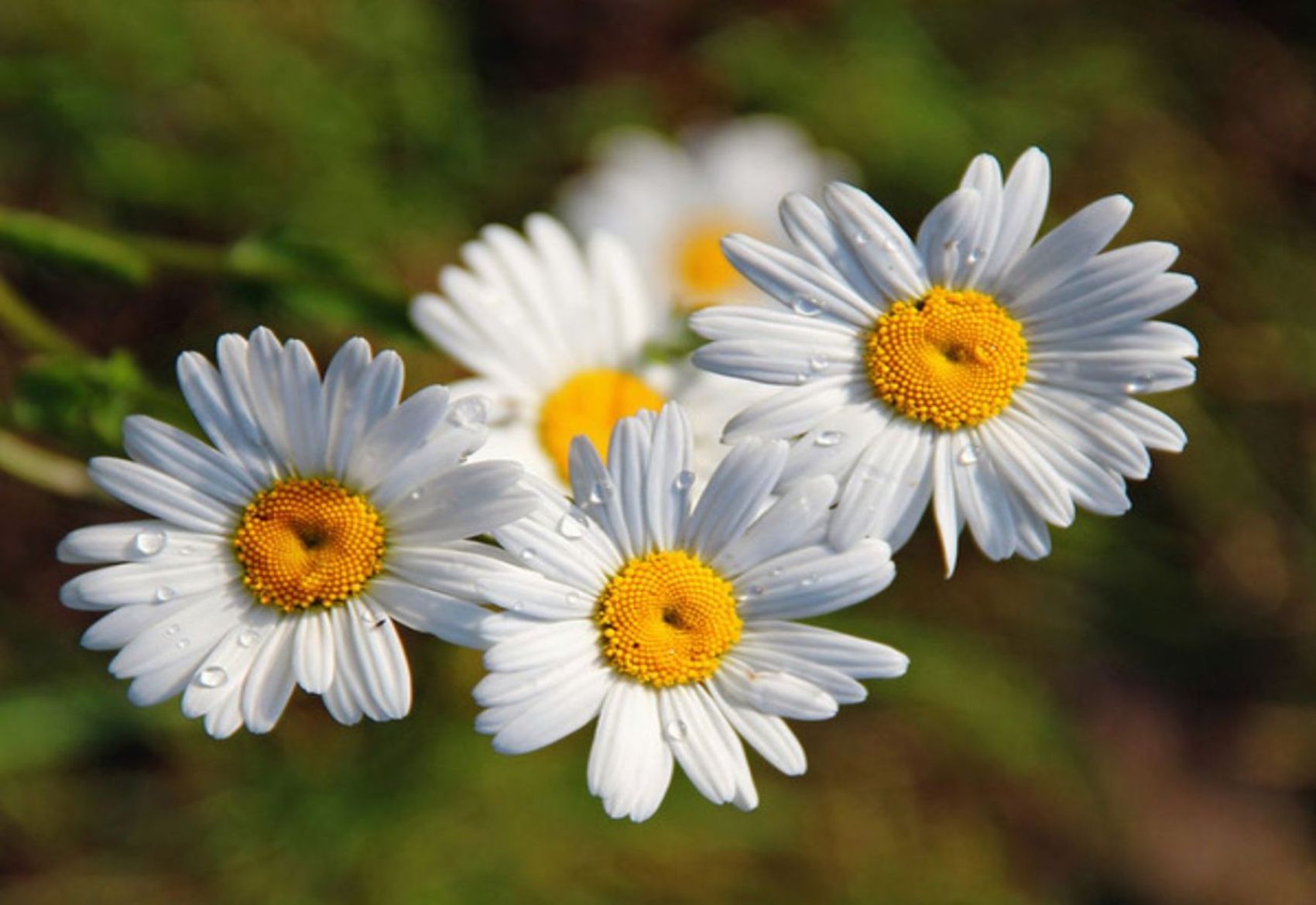 Скачать обои для рабочего стола Роса на лепестках ромашек и фото
