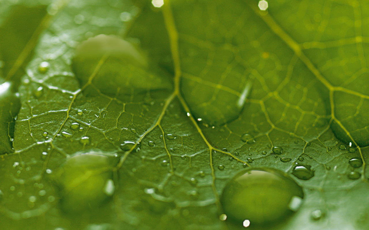 Скачать обои для рабочего стола Роса на зелёном листочке и фото