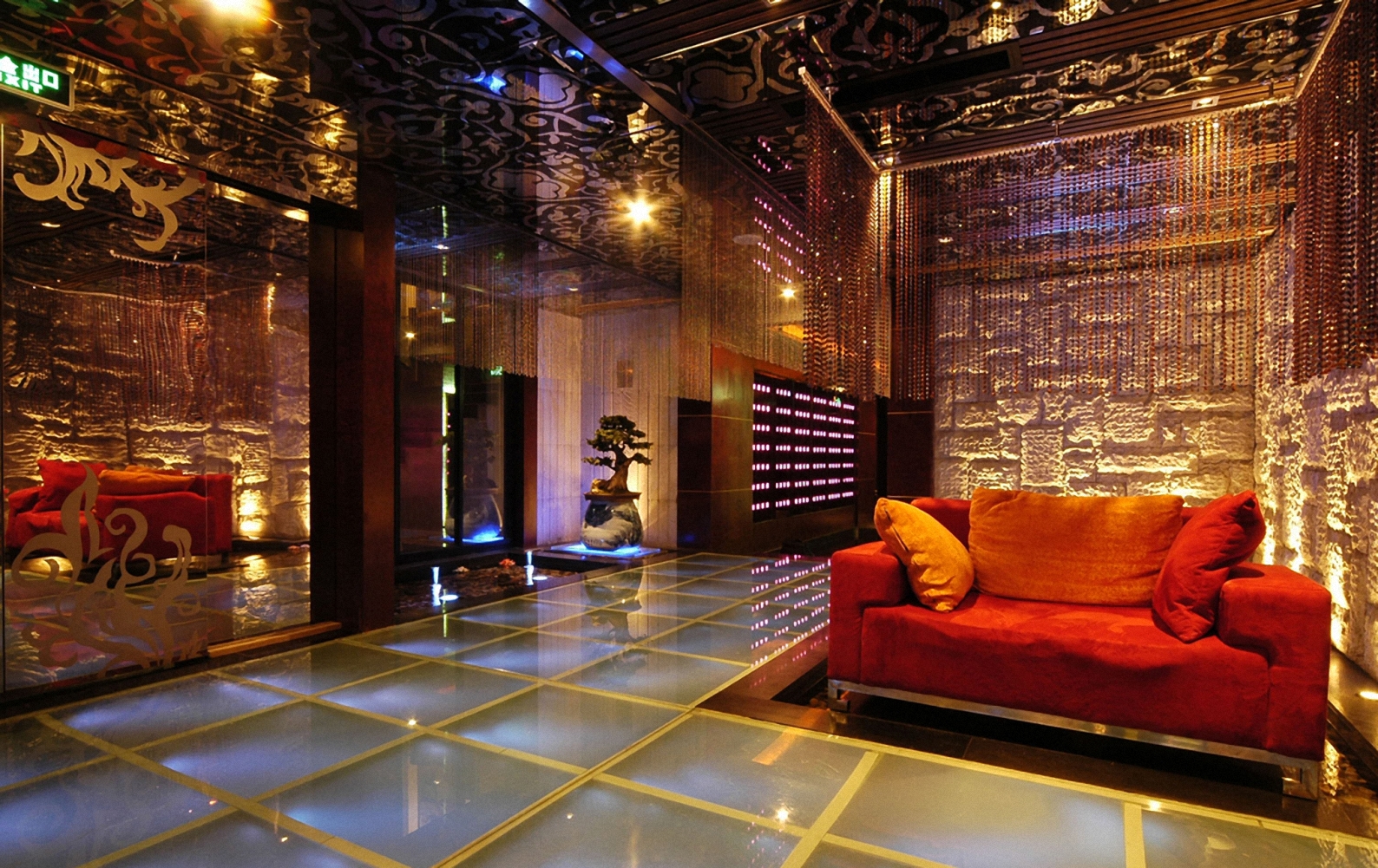Скачать обои для рабочего стола Роскошная комната с красным диваном и фото
