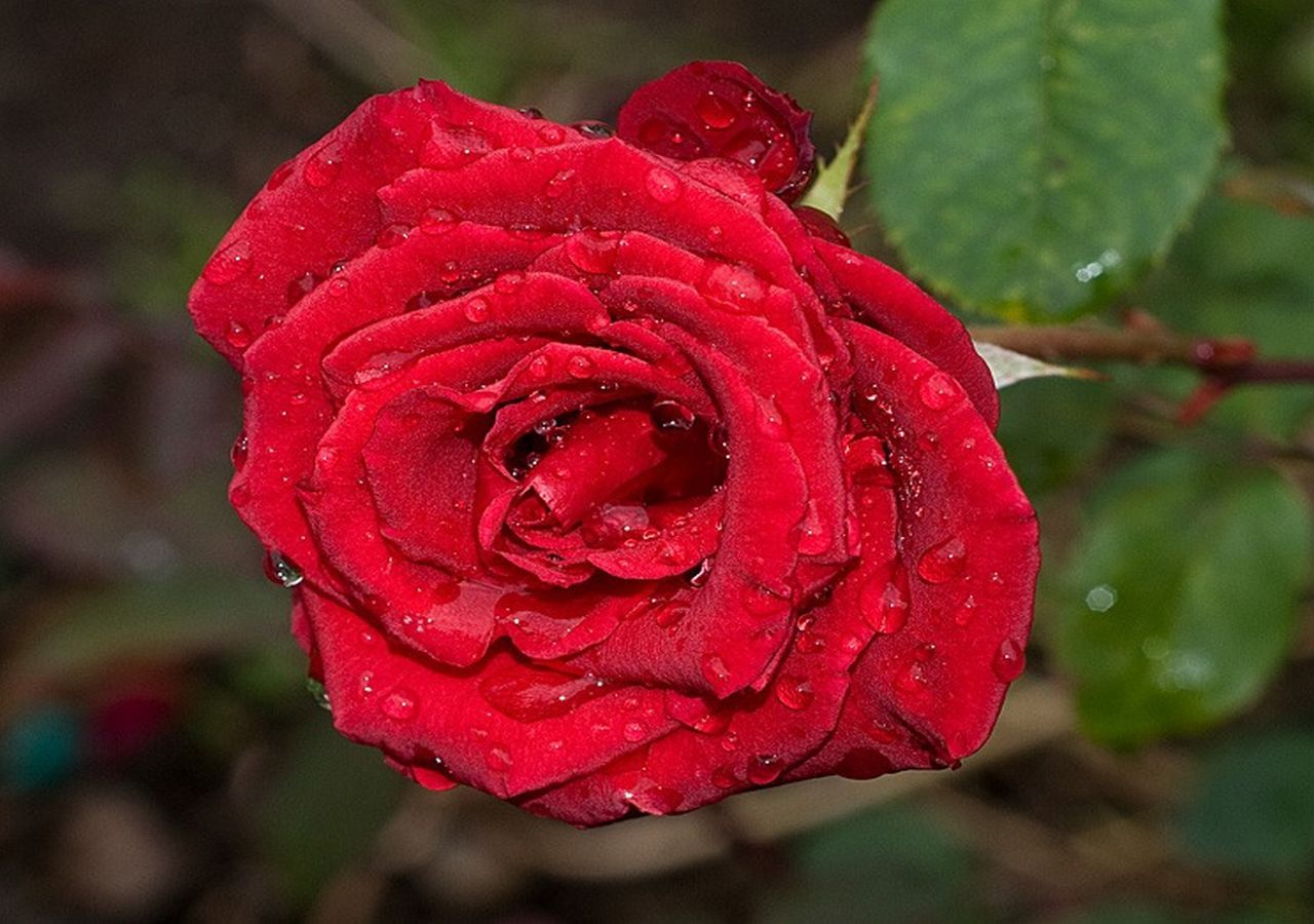 Скачать обои для рабочего стола Роза с каплями на лепестках и фото