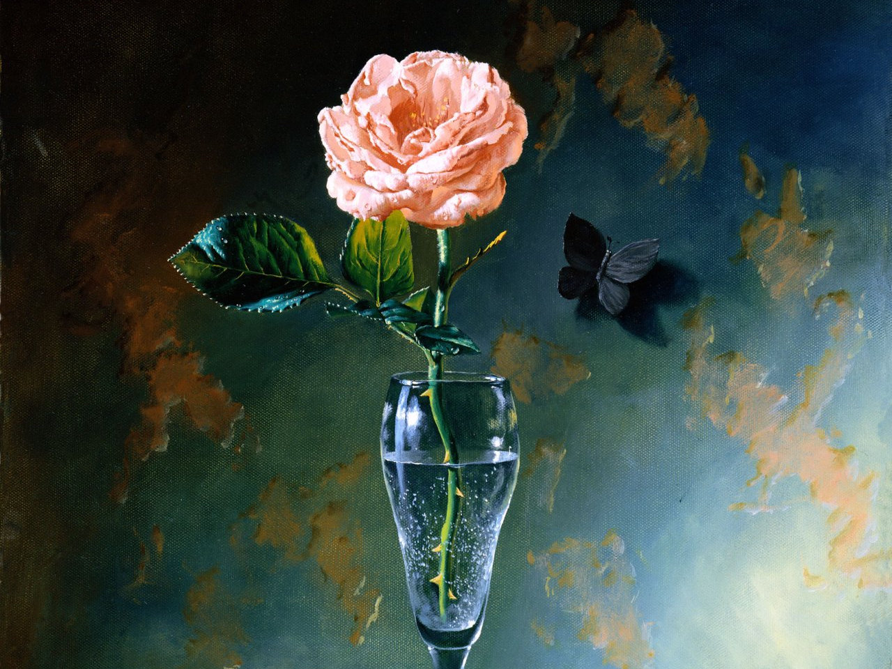 Скачать обои для рабочего стола Роза в высоком бокале и фото