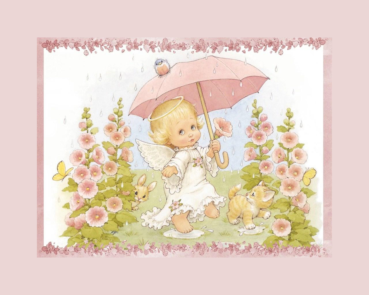 Скачать обои для рабочего стола Розовый ангел с зонтиком и фото