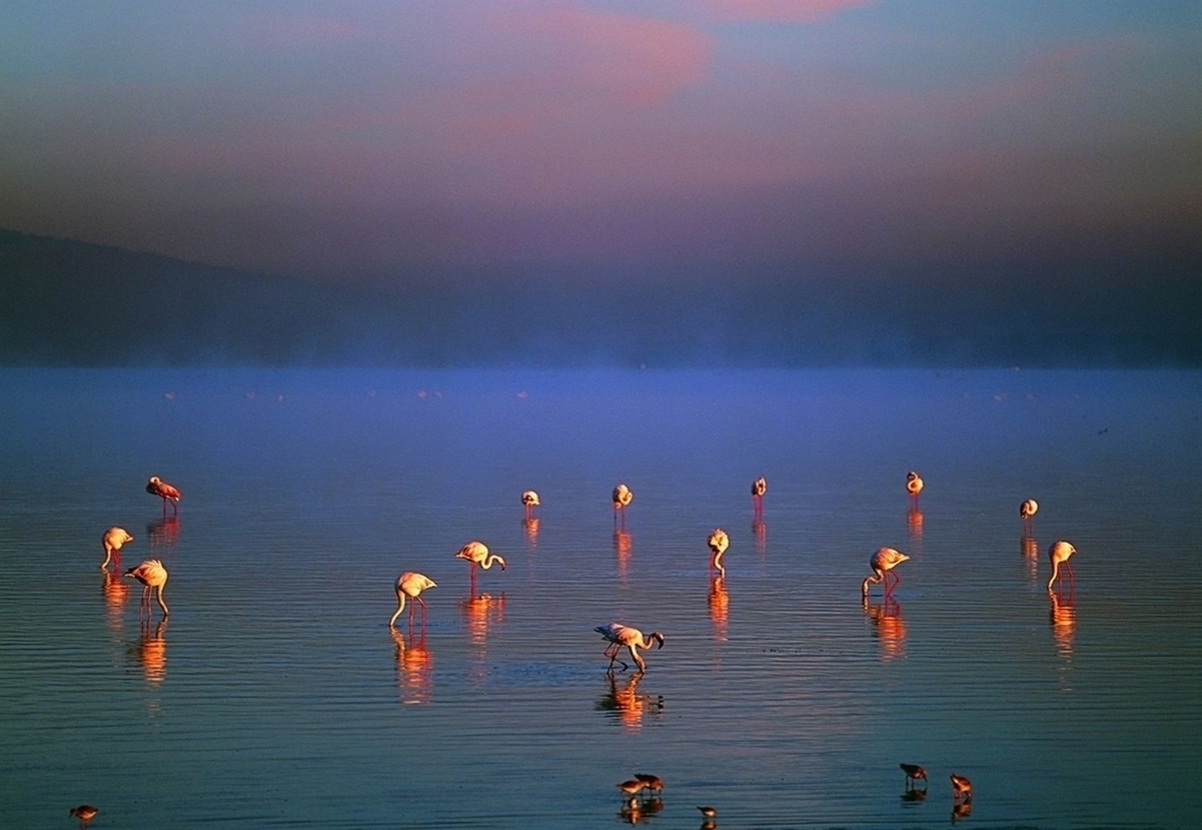 Скачать обои для рабочего стола Розовый фламинго и голубой туман и фото