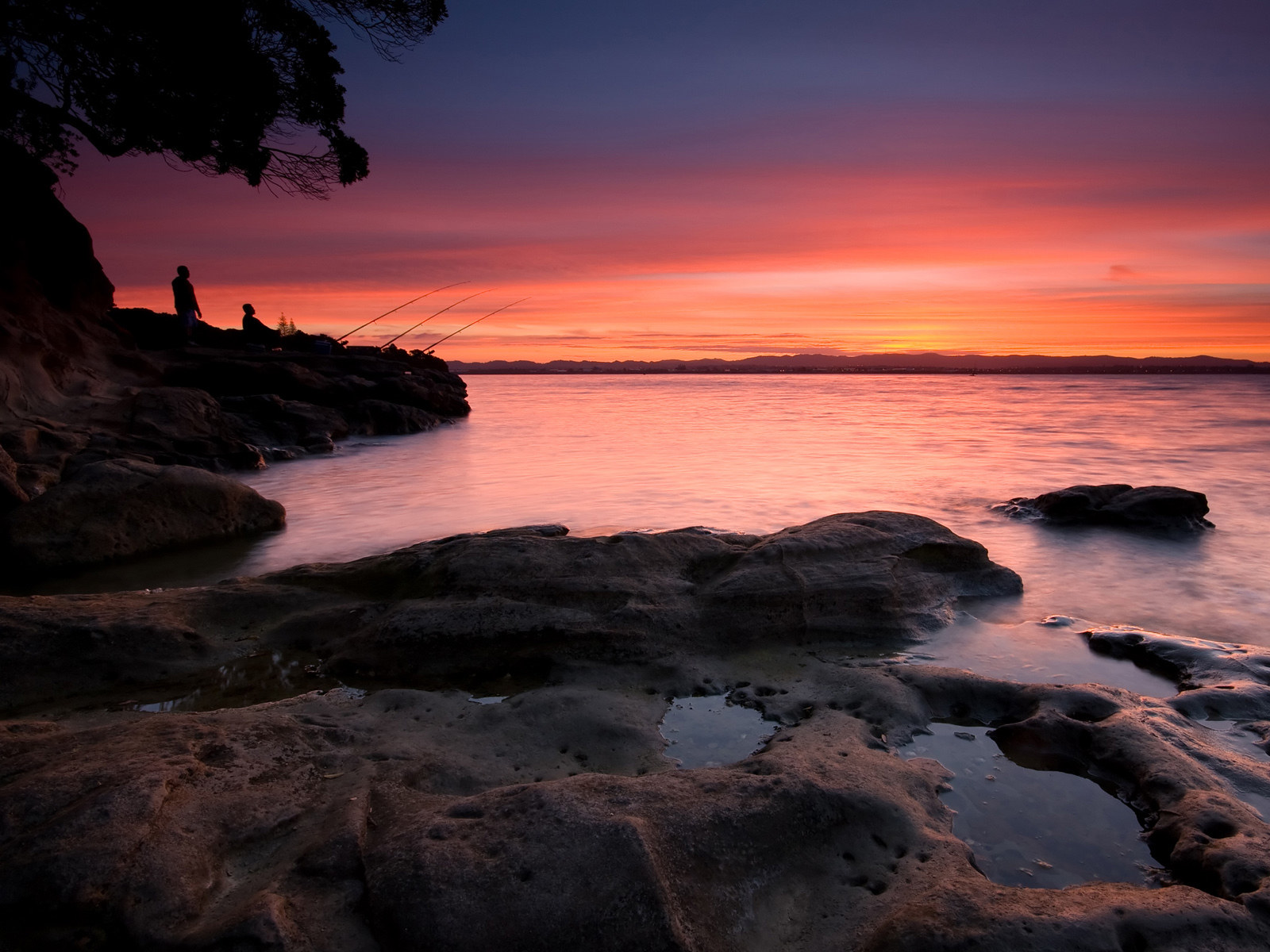 Скачать обои для рабочего стола Розовый закат на море и фото