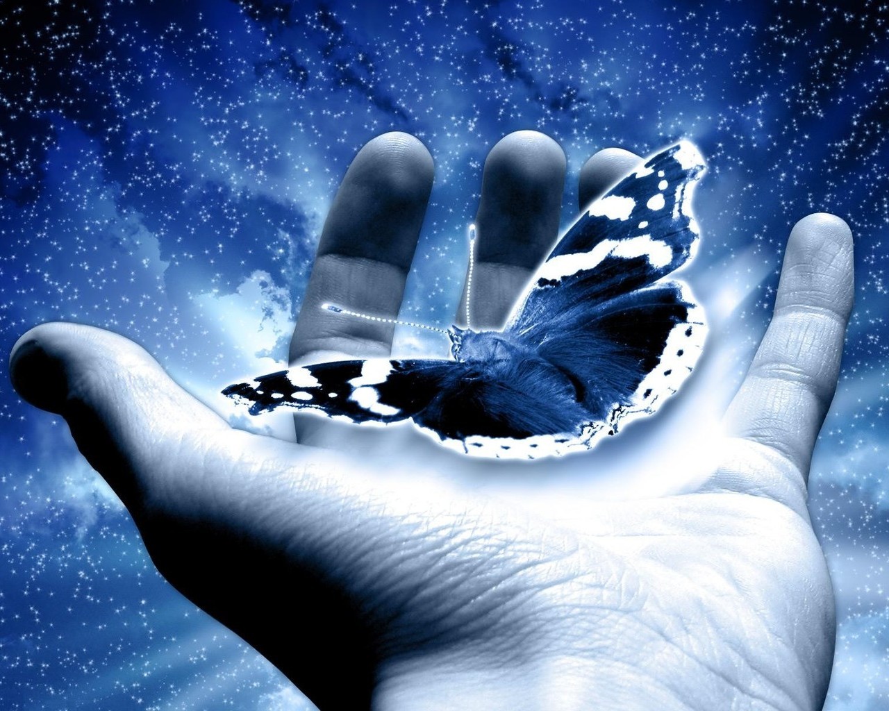 Скачать обои для рабочего стола Рука и бабочка и фото