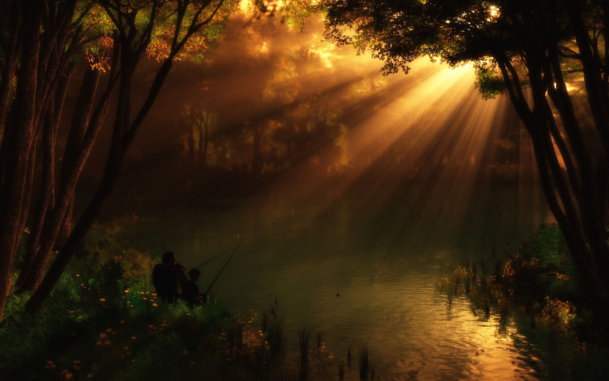 Скачать обои для рабочего стола Рыбалка на рассвете и фото