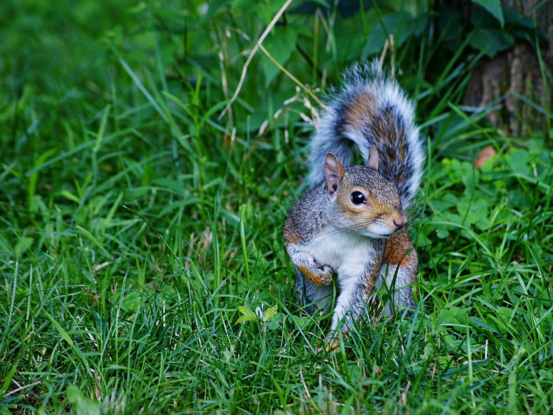 Обои Рыжая белочка идет по травке