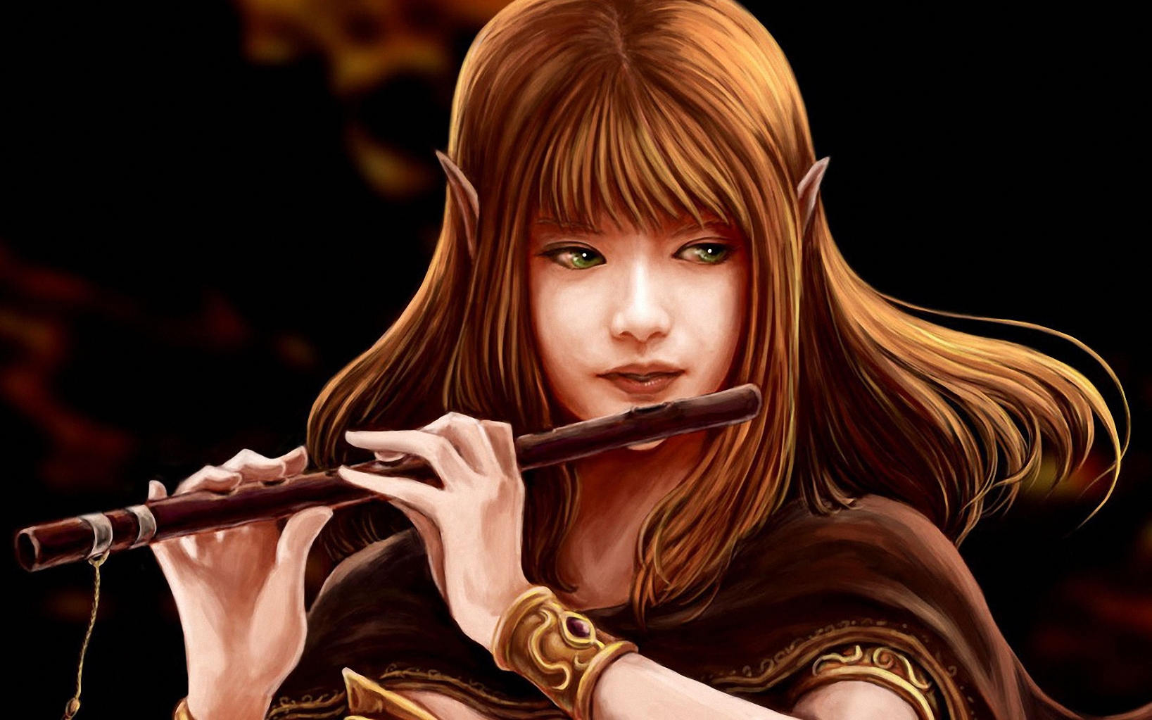 Скачать обои для рабочего стола Рыжеволосая играет на дудочке и фото