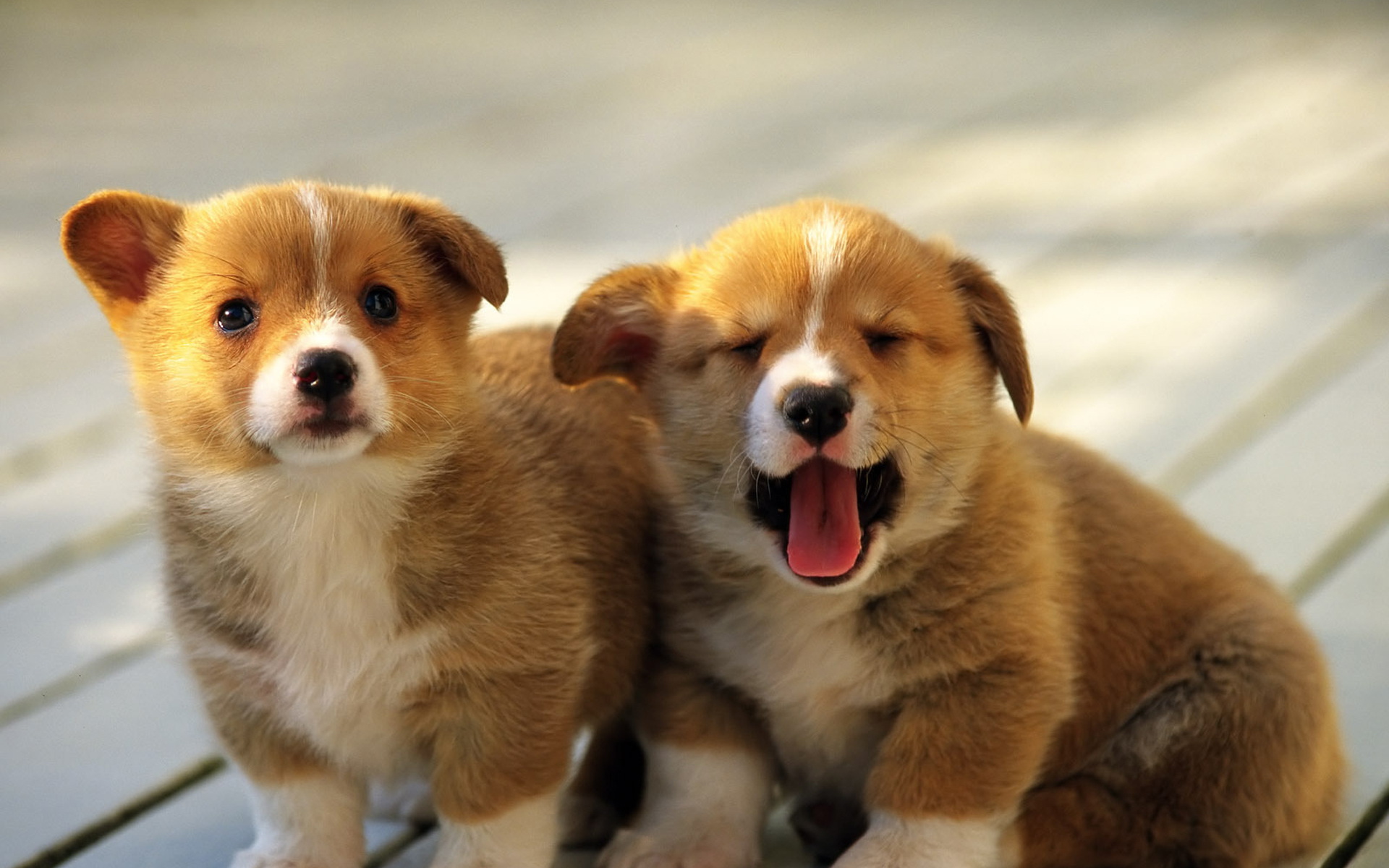 Скачать обои для рабочего стола Рыжие с белым щенки и фото