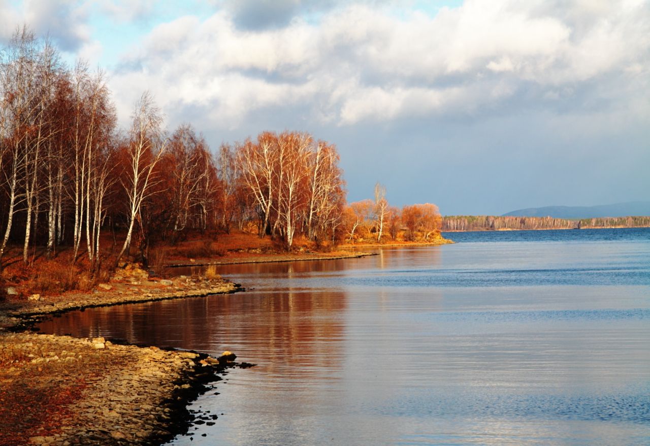 Скачать обои для рабочего стола Рыжий берег озера и фото