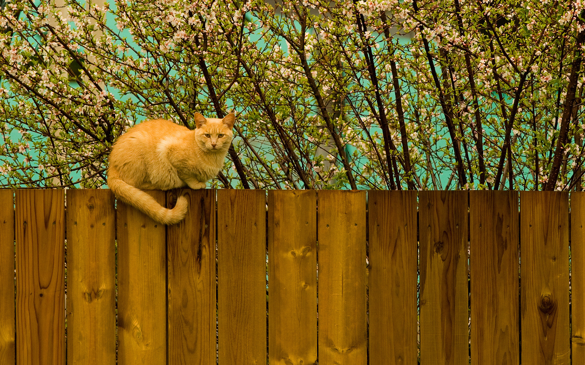Скачать обои для рабочего стола Рыжий кот на заборе и фото