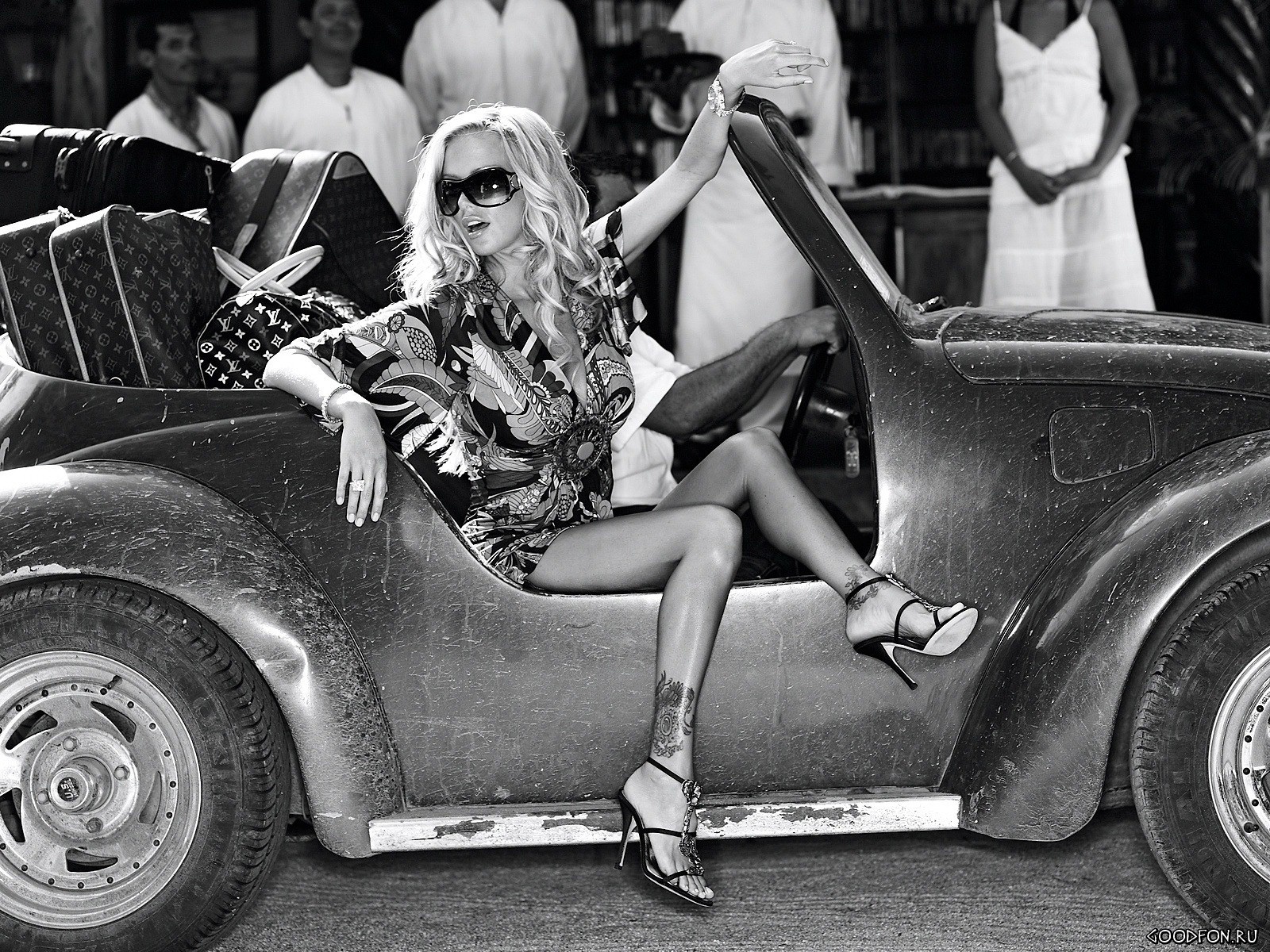 Скачать обои для рабочего стола С чемоданами в машине и фото