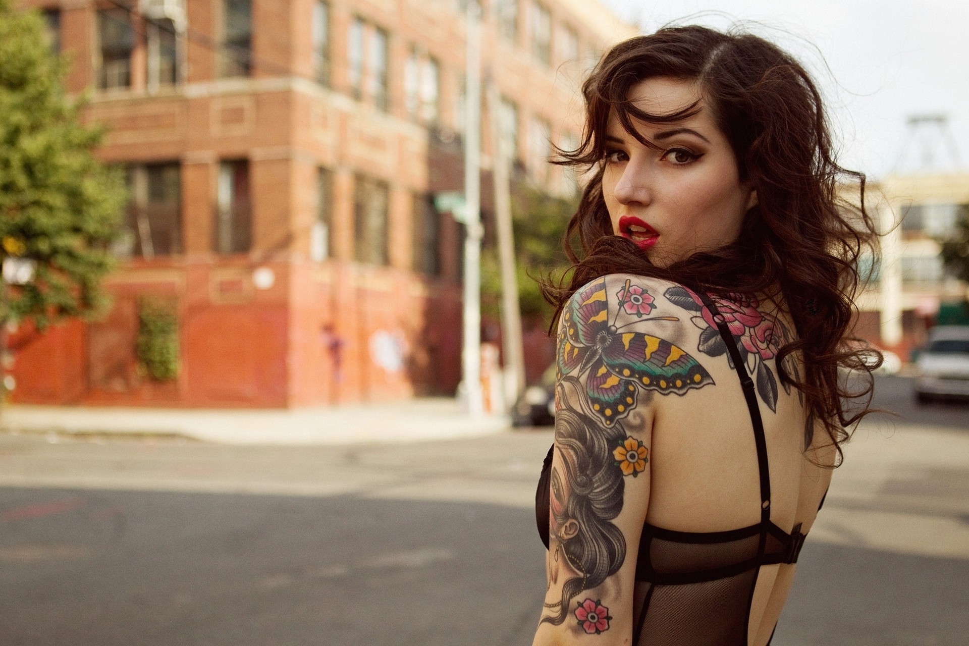 Скачать обои для рабочего стола С цветной татуировкой на улице и фото