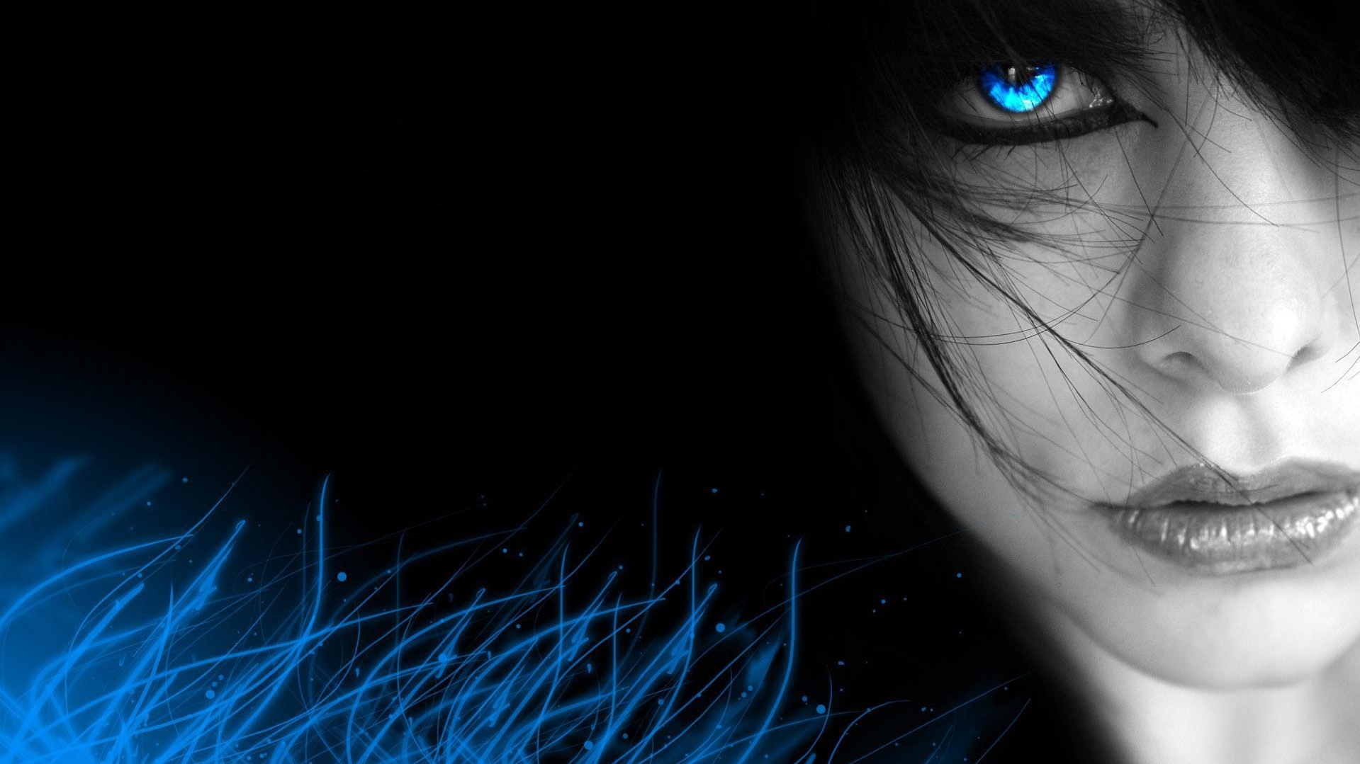 Скачать обои для рабочего стола С голубыми глазами на черном фоне и фото