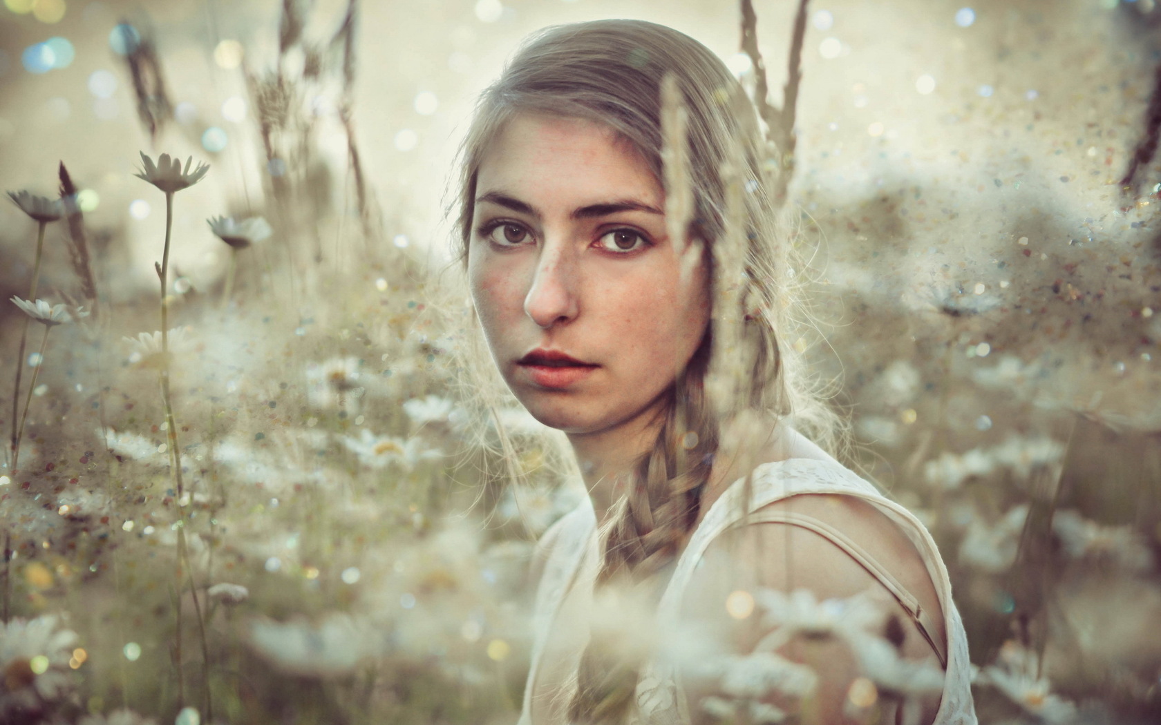 Скачать обои для рабочего стола С косой девушка и ромашки и фото