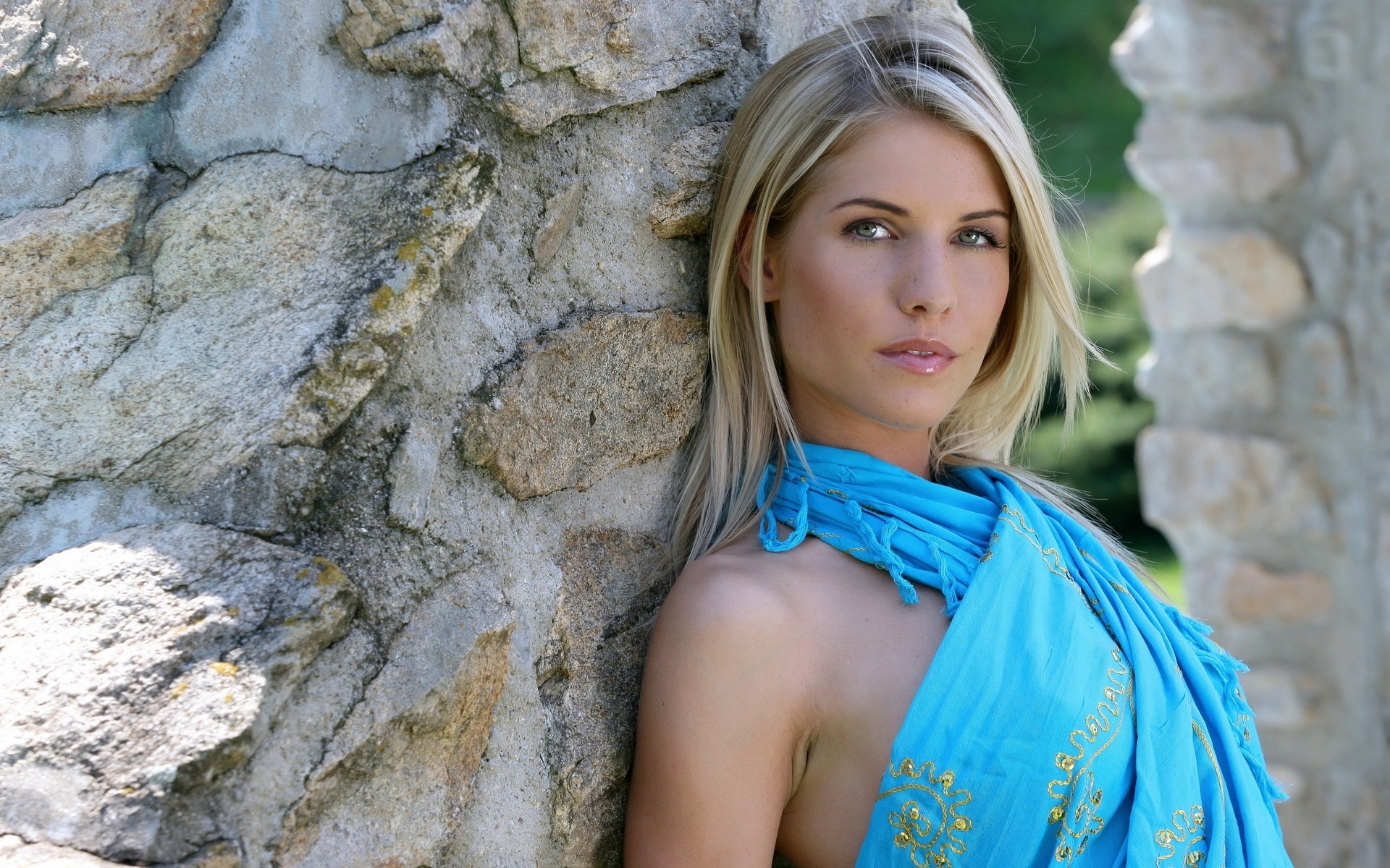Скачать обои для рабочего стола С платком на шее у стен из камня и фото