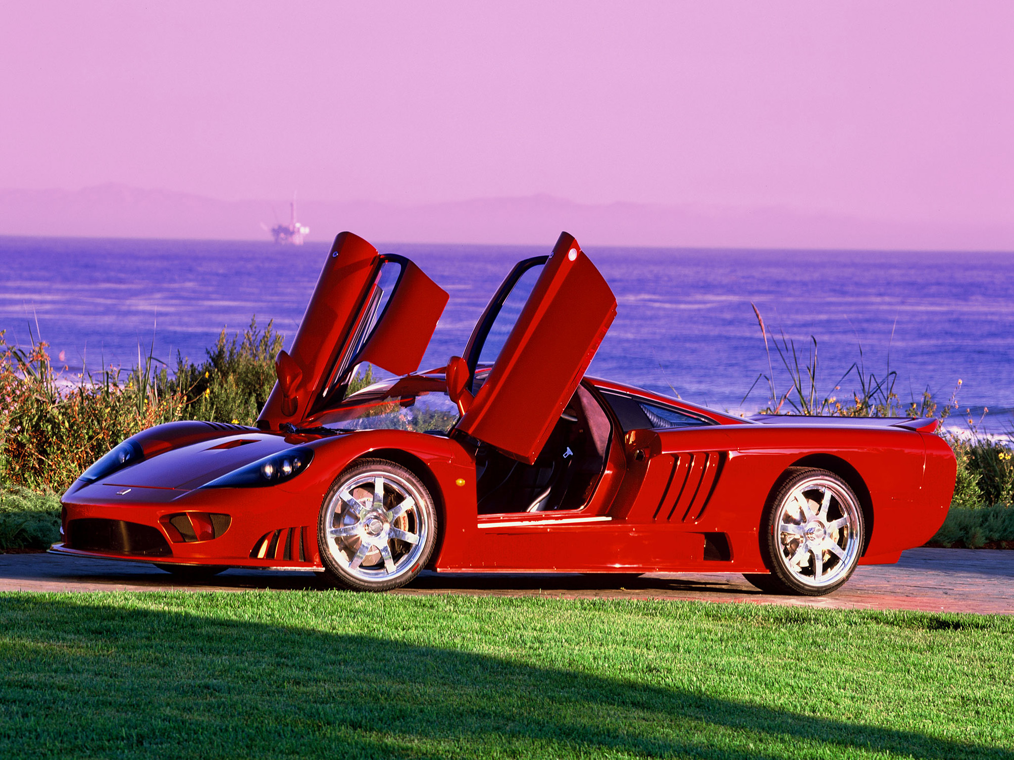 Скачать обои для рабочего стола Saleen S7 открыты двери и фото