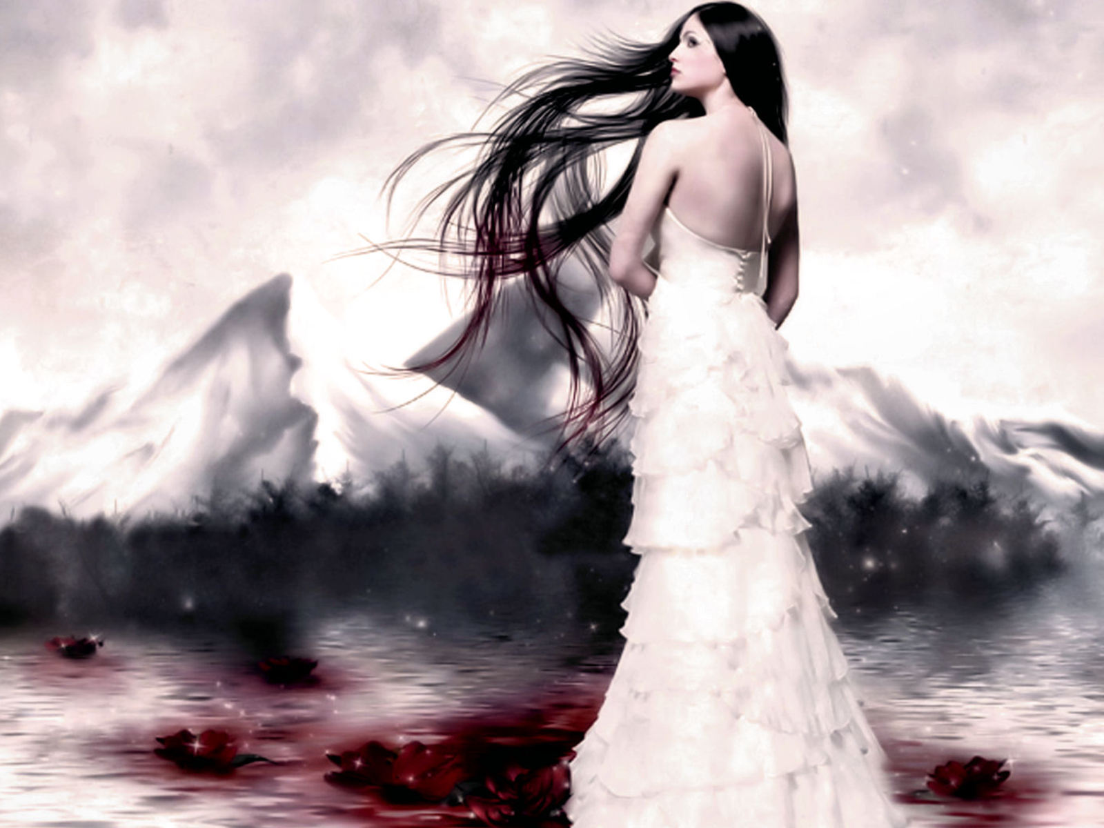 Скачать обои для рабочего стола Само очарование в платье и фото