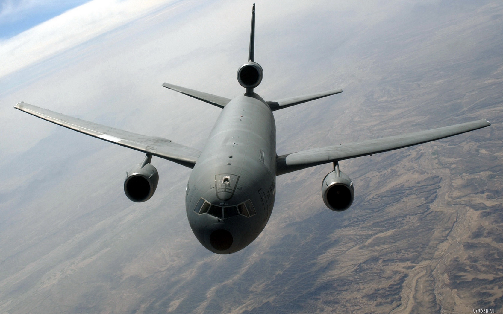Скачать обои для рабочего стола Самолет летящий над землей и фото