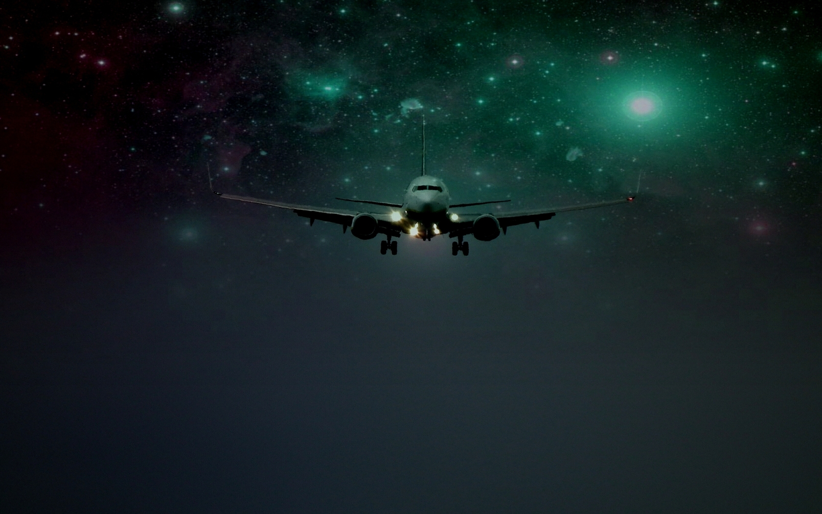 Похожие обои на Самолет с включеными огнями вечерней порою в небе: