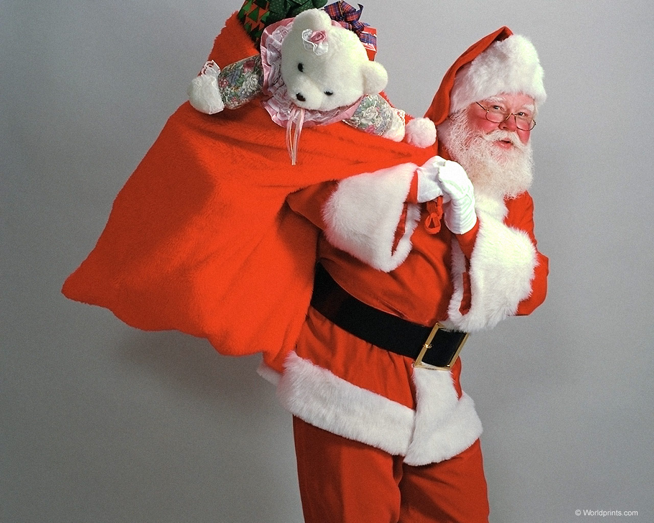 Скачать обои для рабочего стола Санта Клаус с подарками и фото