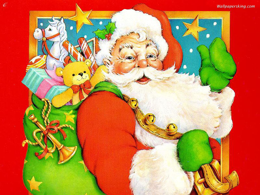 Скачать обои для рабочего стола Санта Клаус с подарками в рамке и фото