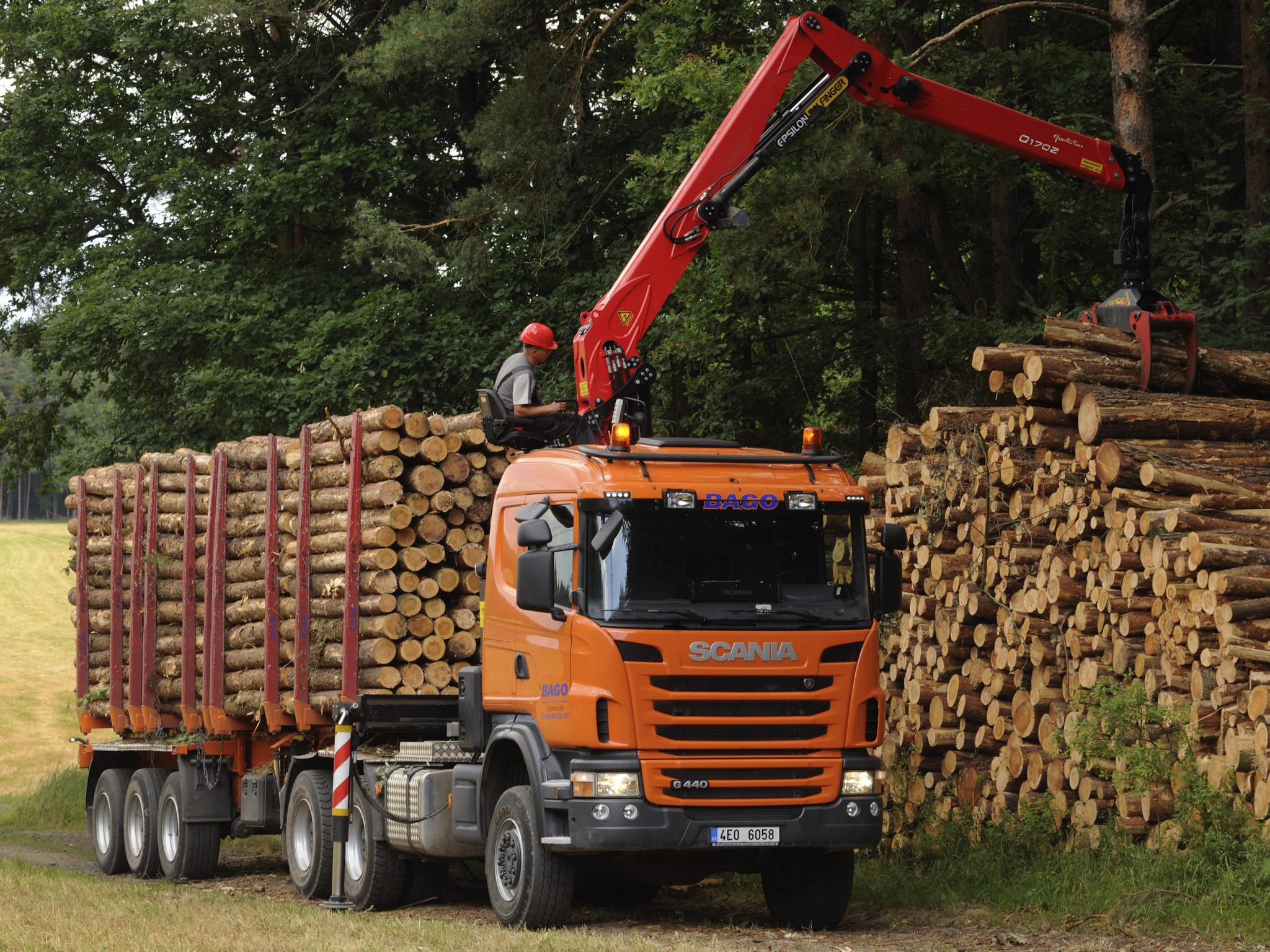 Скачать обои для рабочего стола Scania G440 6x6 Timber Truck 2010 бок и фото