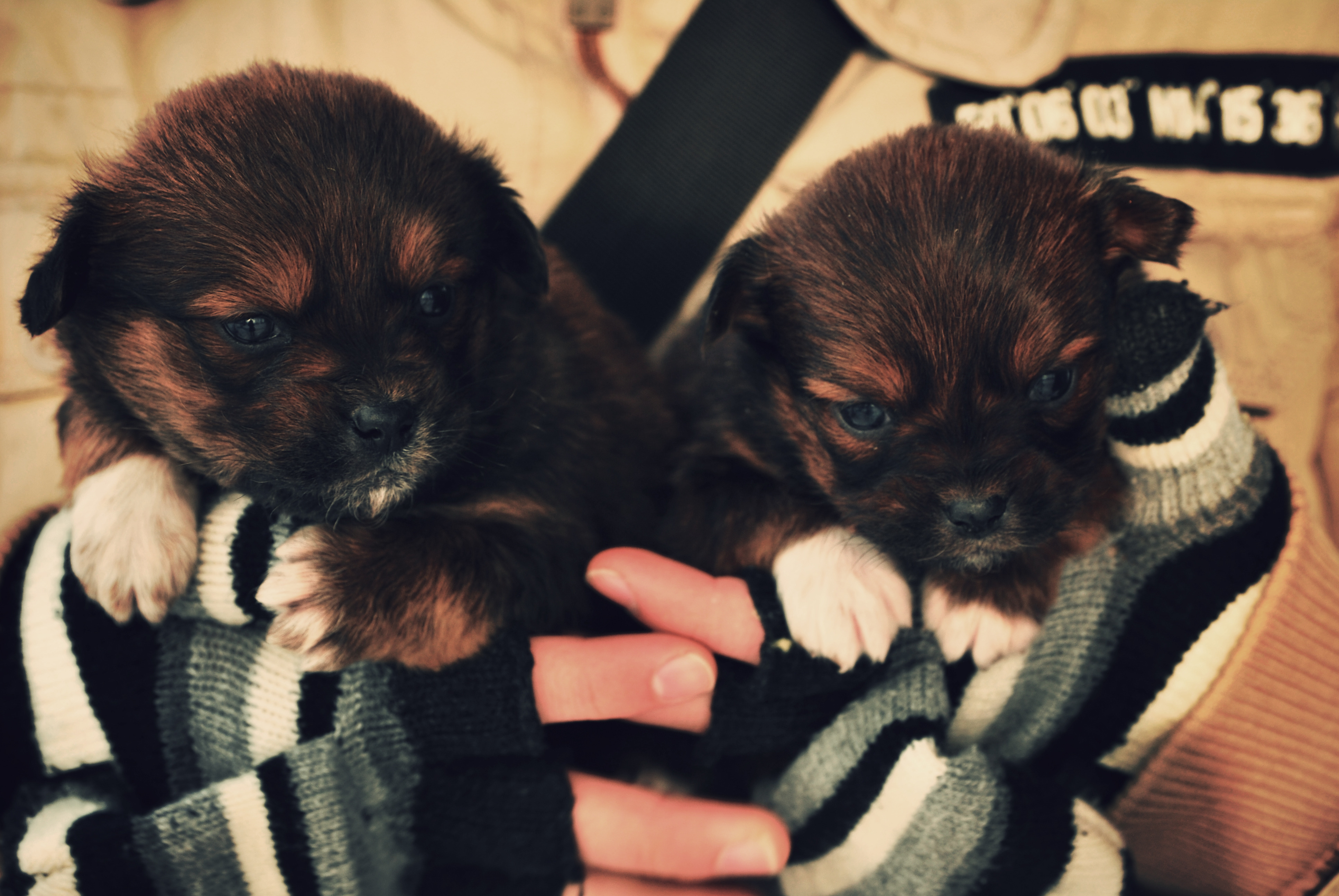 Обои Щенки на руках