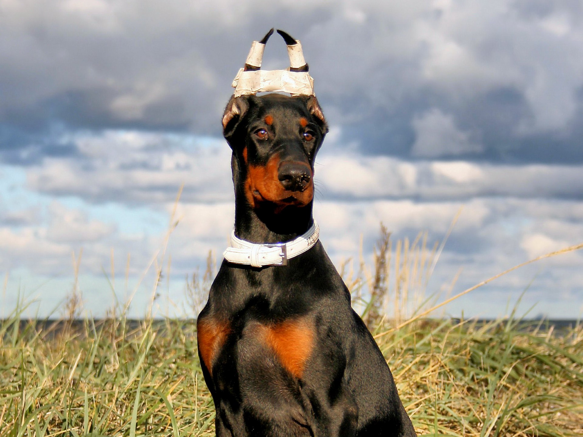 Скачать обои для рабочего стола Щенок добермана позирует для фото и фото