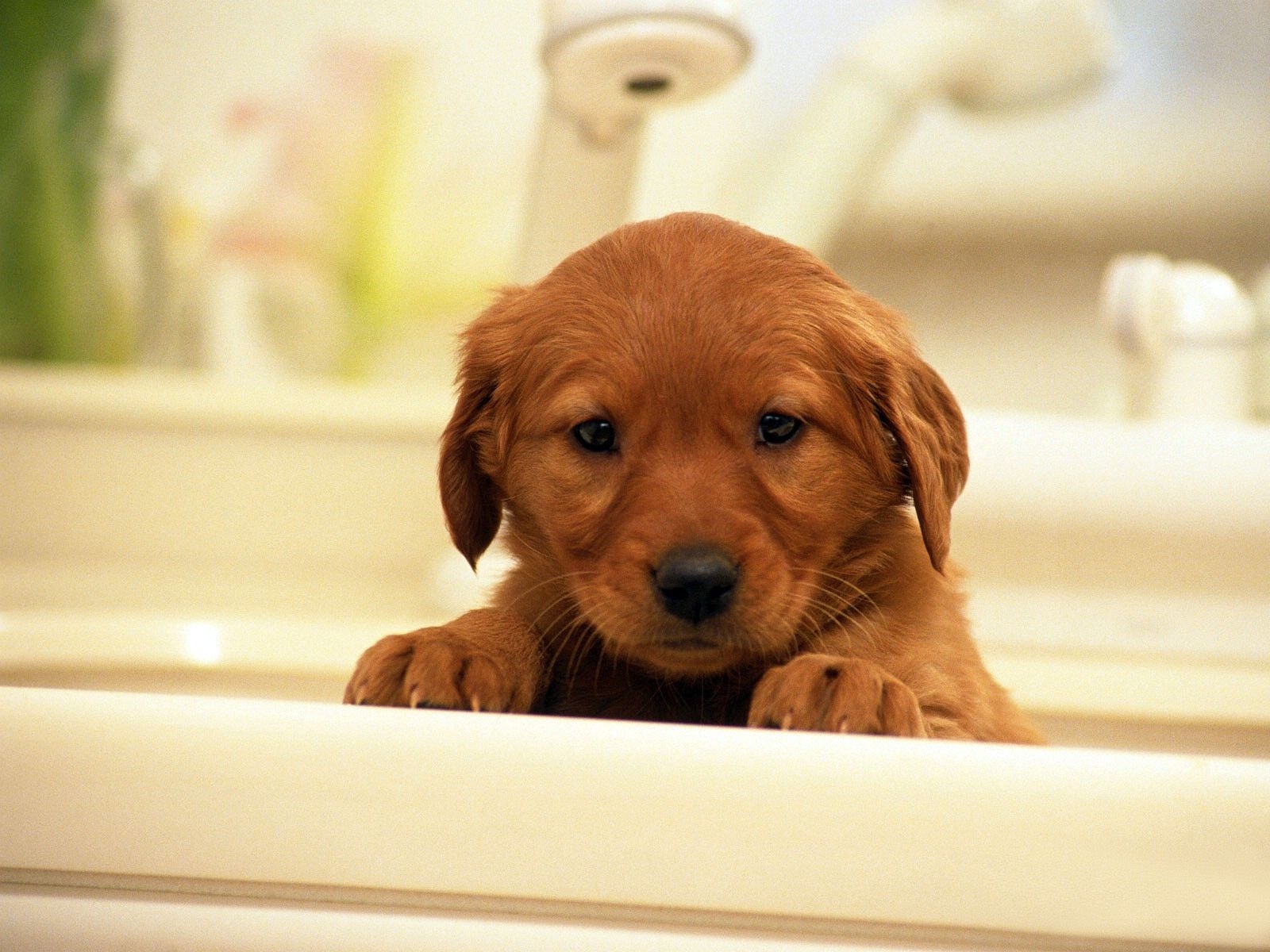 Скачать обои для рабочего стола Щенок лабрадора в раковине и фото