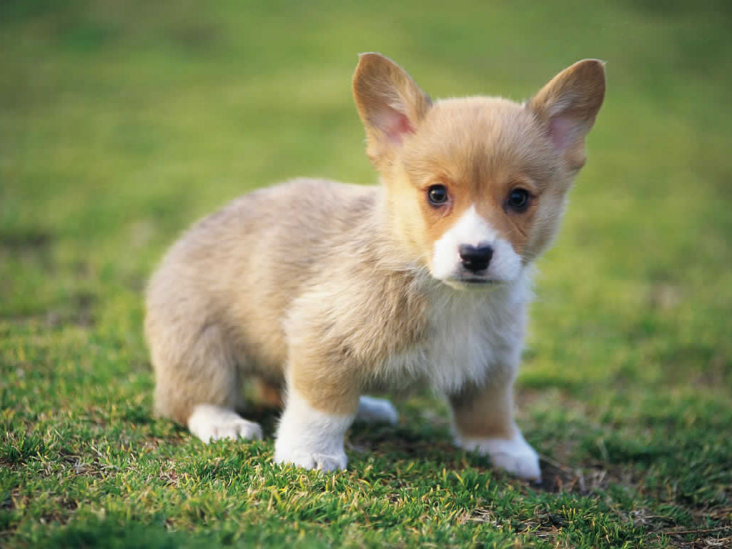Скачать обои для рабочего стола Щенок на лужайке и фото