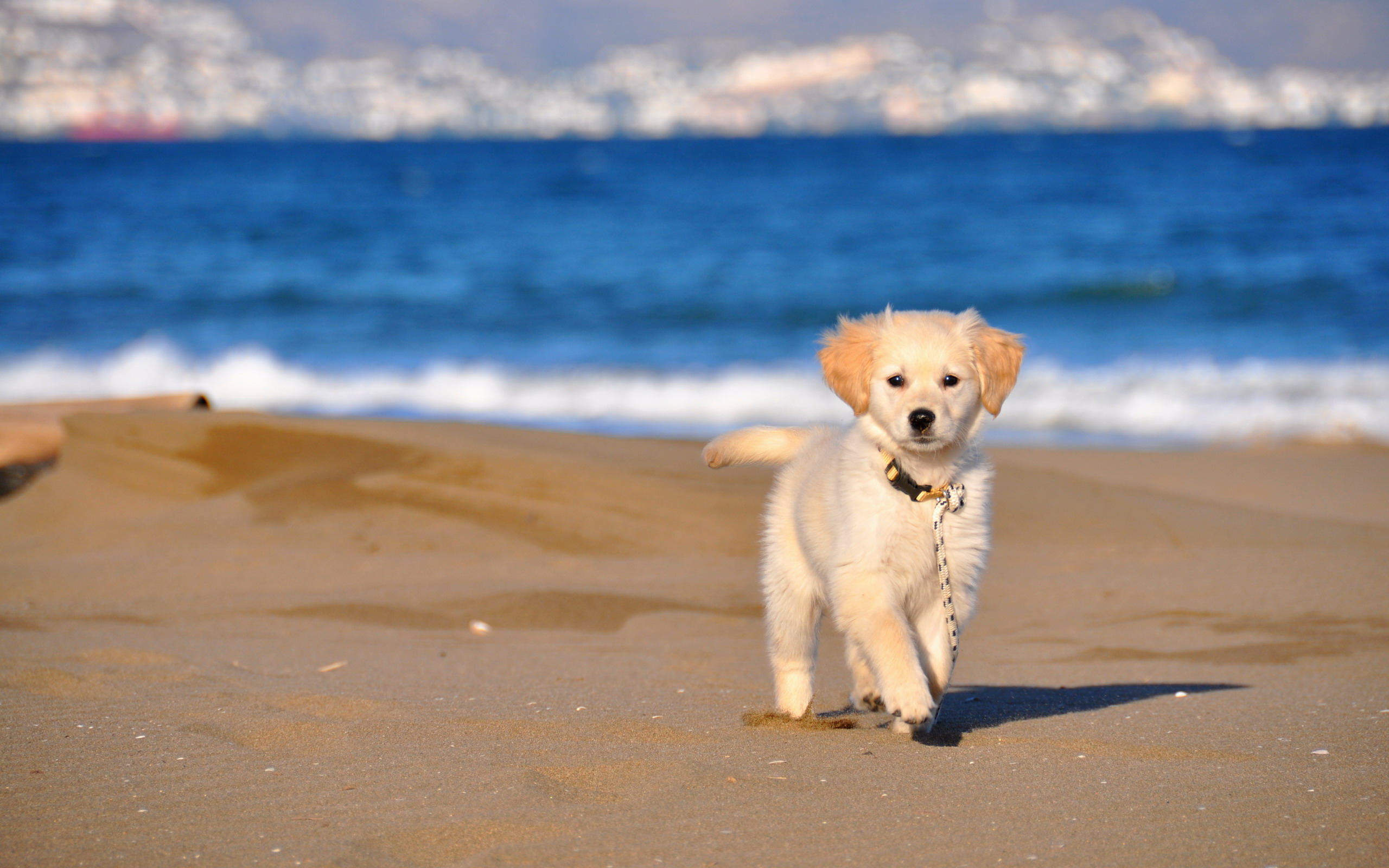 Скачать обои для рабочего стола Щенок на пляже и фото