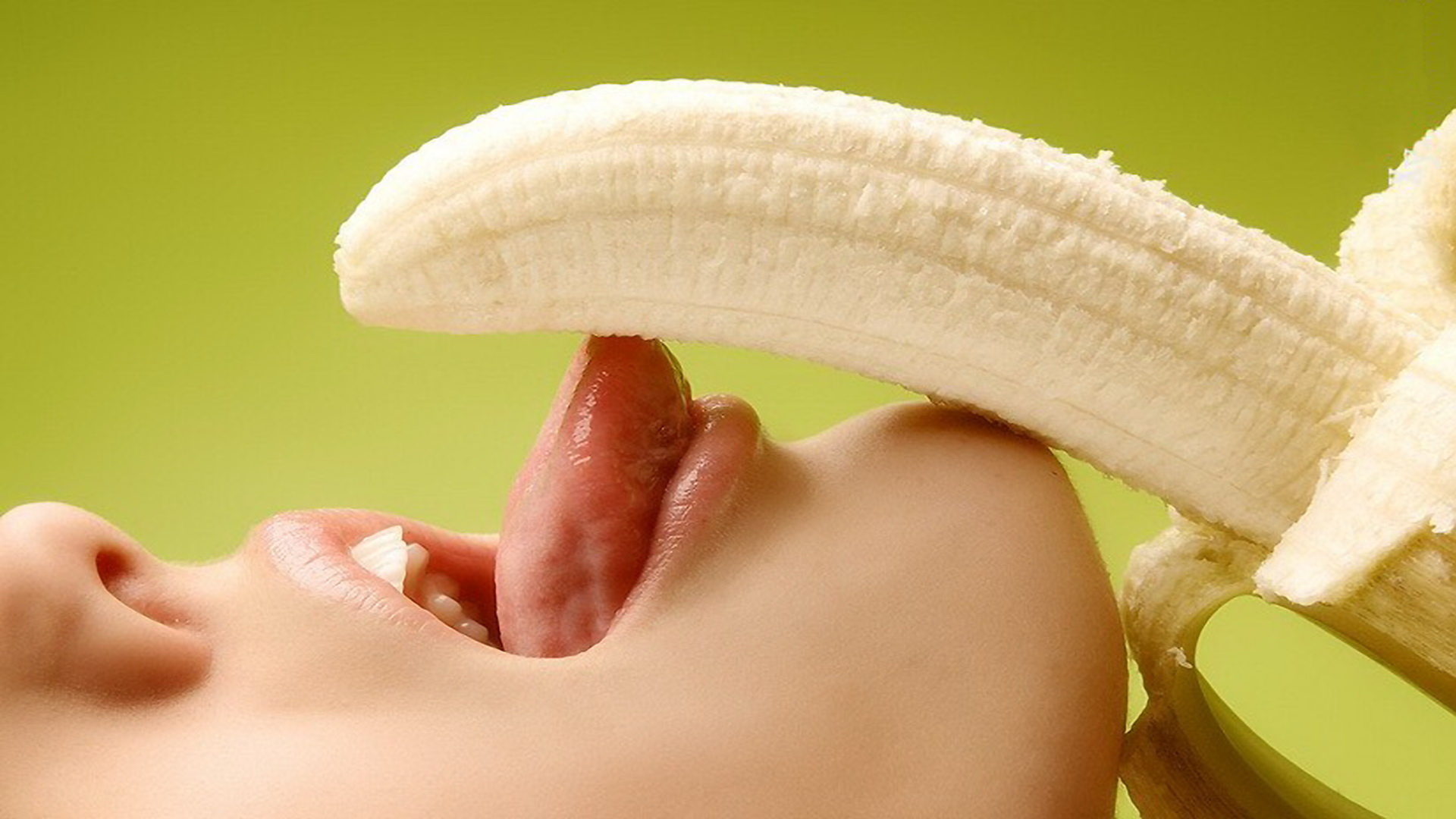 Скачать обои для рабочего стола Сексуально облизывает банан и фото