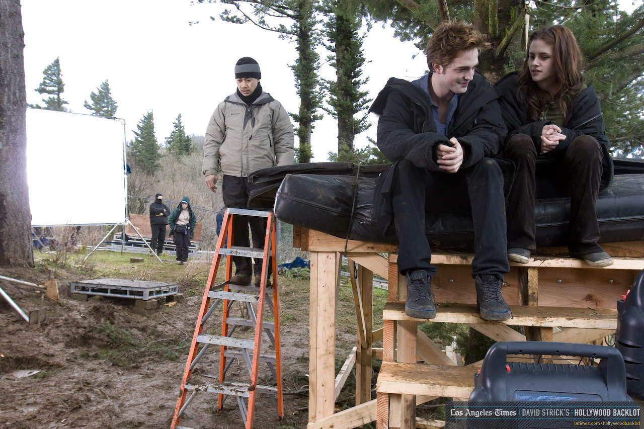 Обои Съемки фильма, Белла и Эдвард разговаривают