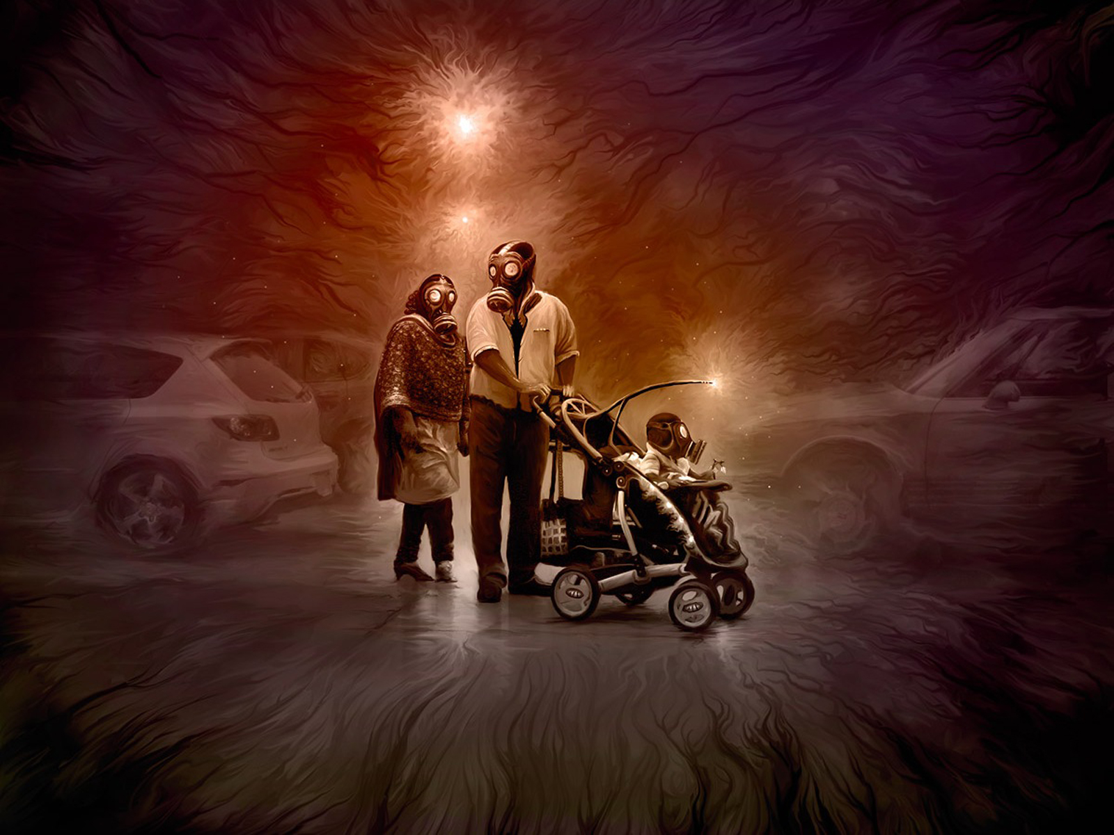 Скачать обои для рабочего стола Семья в керогазах и фото