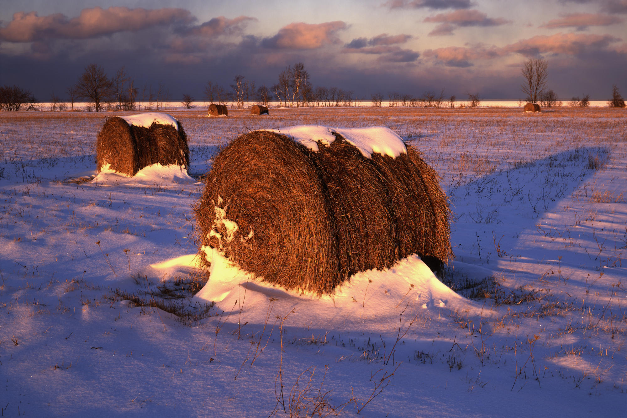 Скачать обои для рабочего стола Сено на поле зимой и фото
