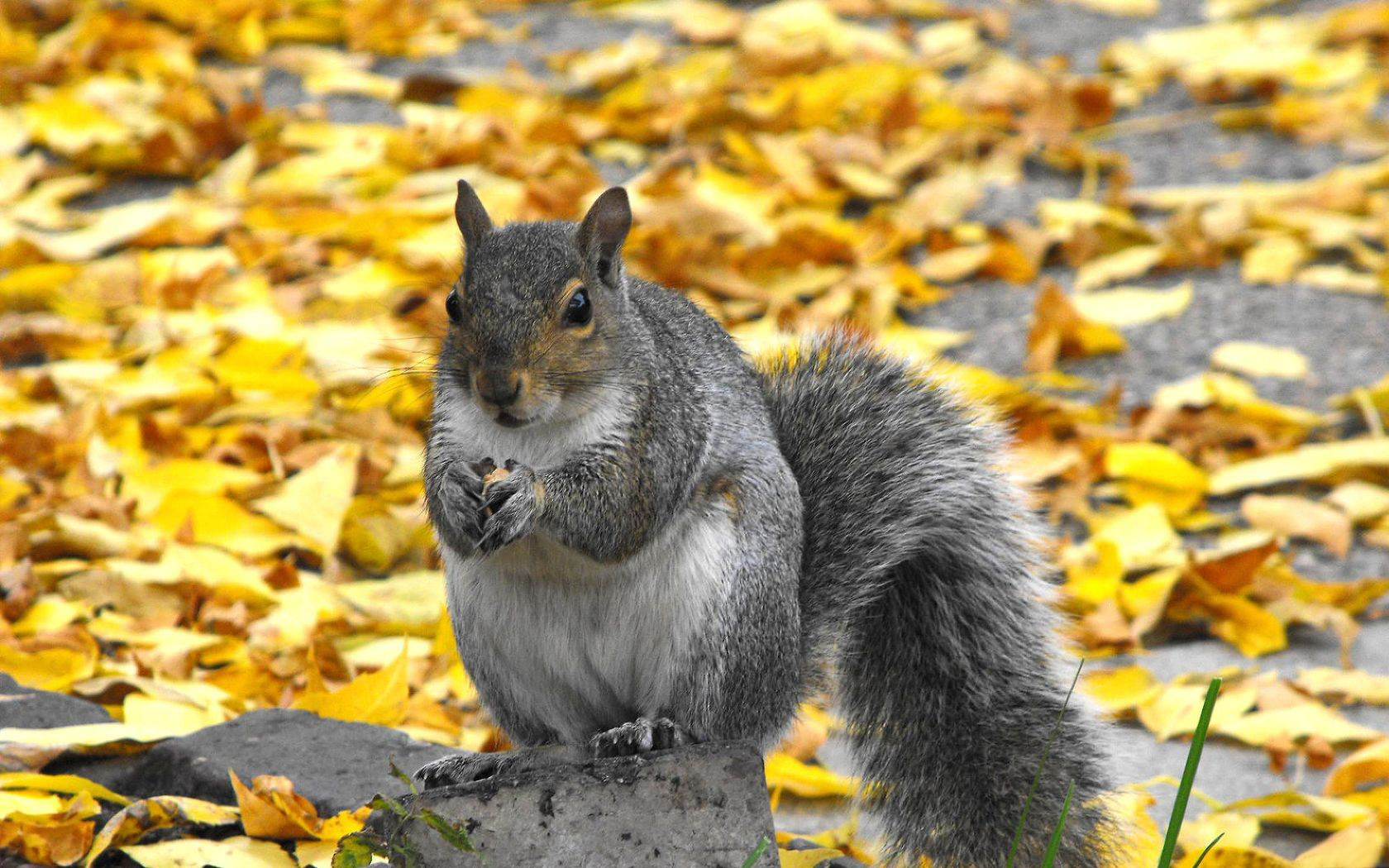 Скачать обои для рабочего стола Серая белочка осенью и фото