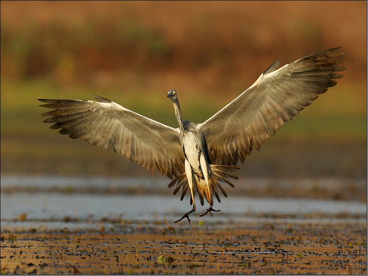 Похожие обои на Серая цапля раскинула крылья над болотом: