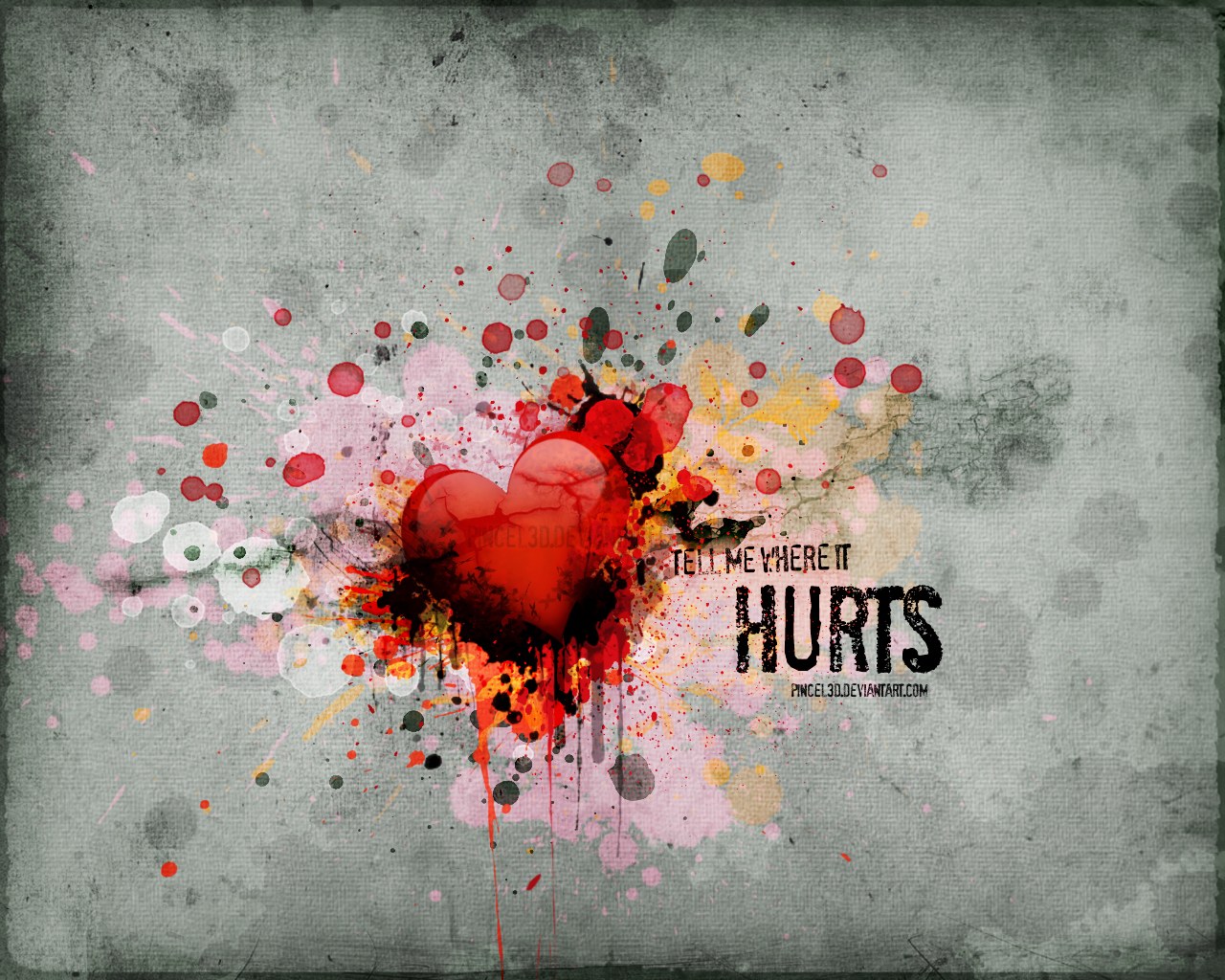 Похожие обои на Сердце и краски, надпись - TELL ME WHERE IT HURTS: