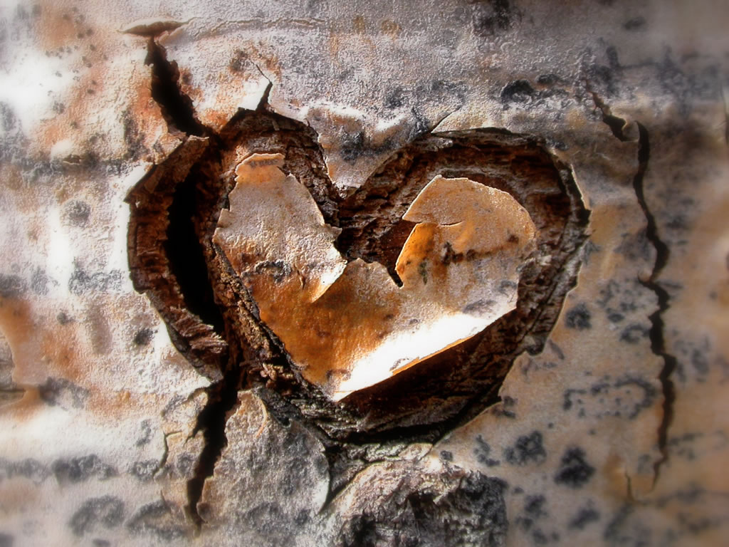 Скачать обои для рабочего стола Сердце на берёзе и фото