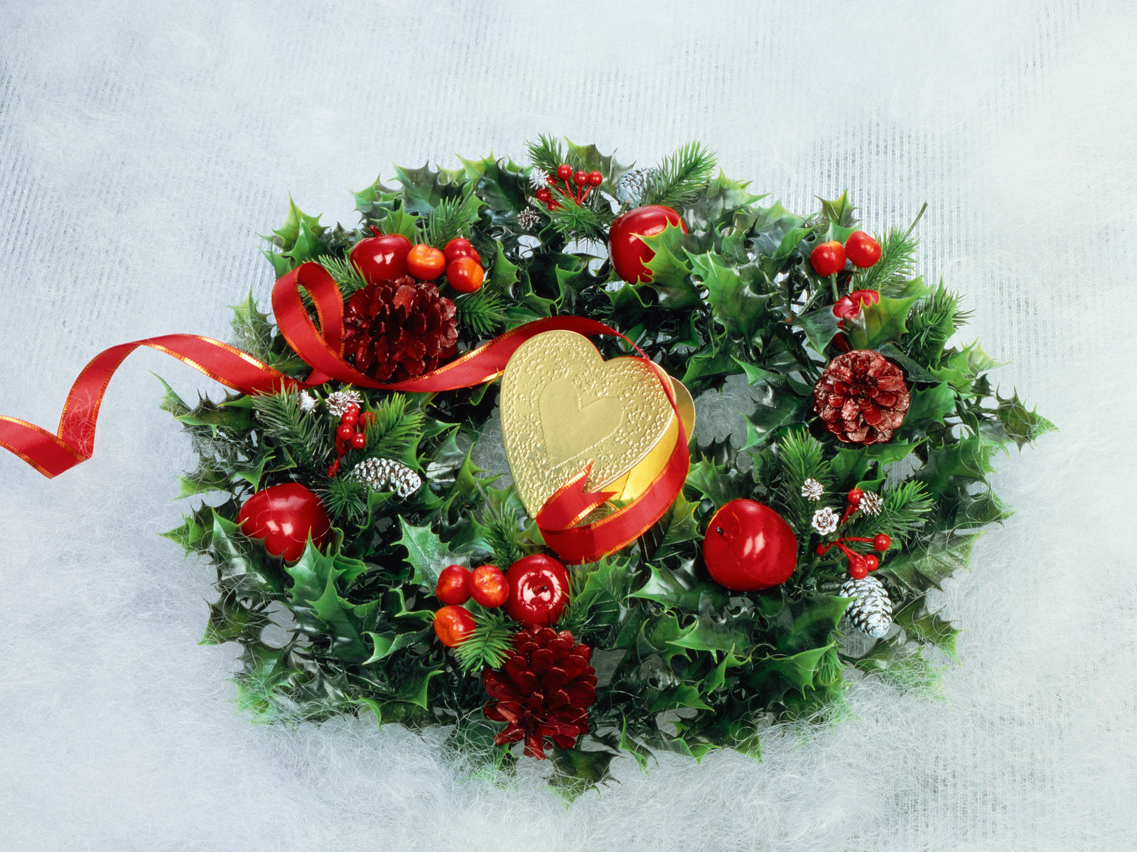 Скачать обои для рабочего стола Сердечко вокруг красивого венка и фото