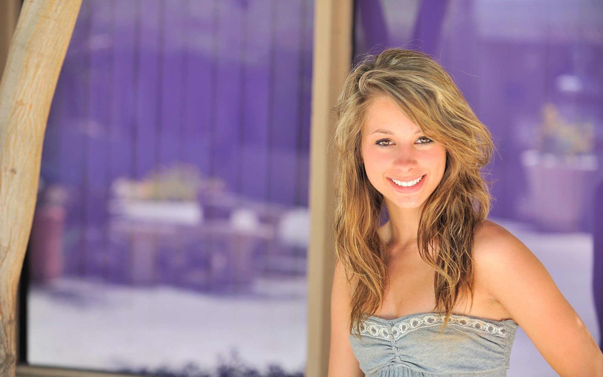 Скачать обои для рабочего стола Серое платье на светло русой девушке и фото