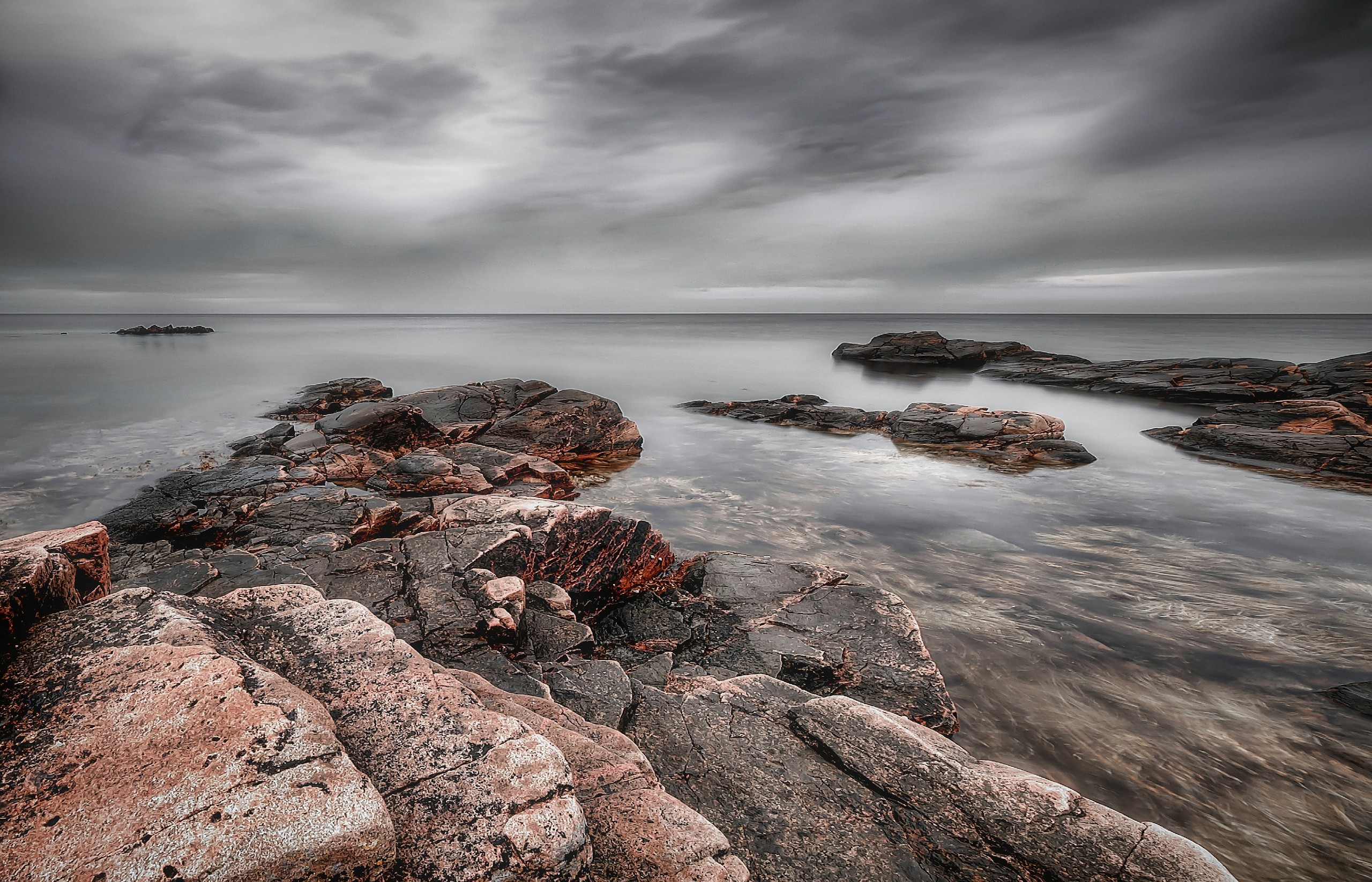 Скачать обои для рабочего стола Серые камни на морском беpегу и фото