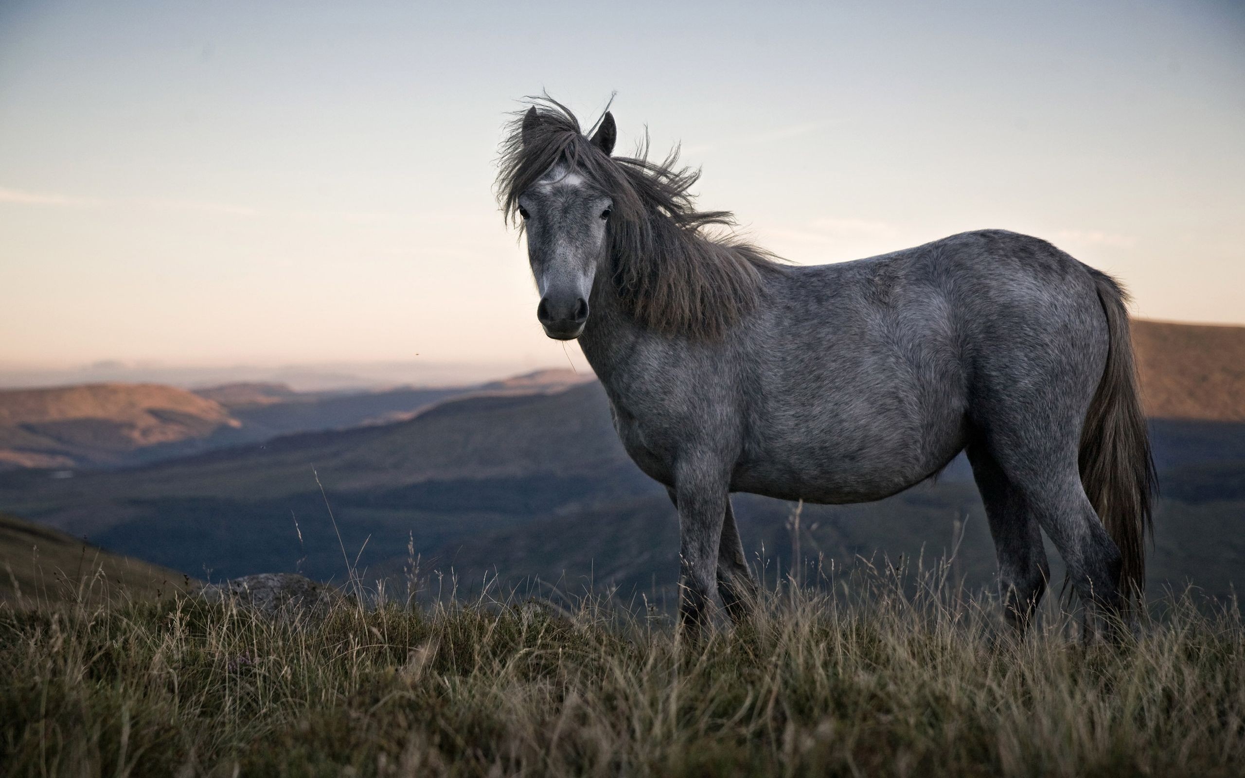 Скачать обои для рабочего стола Серый конь на холмах и фото