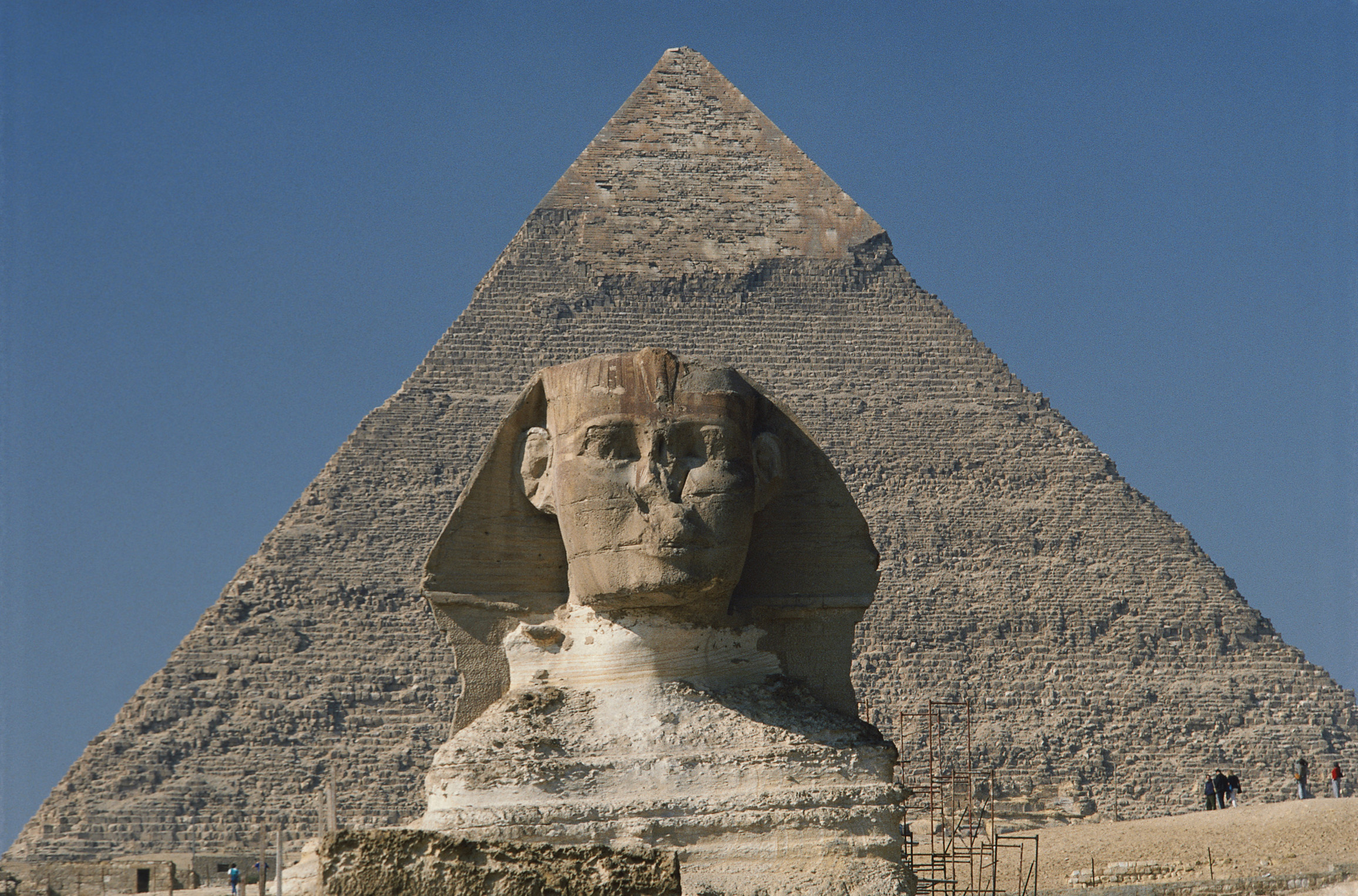 Скачать обои для рабочего стола Сфинкс у пирамиды и фото