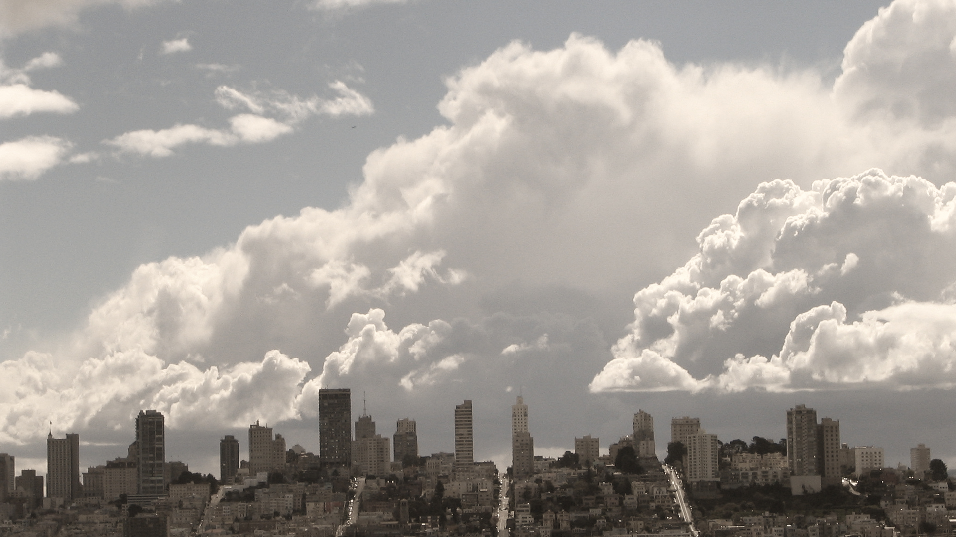Скачать обои для рабочего стола Сгущаются облака над мегаполисом и фото